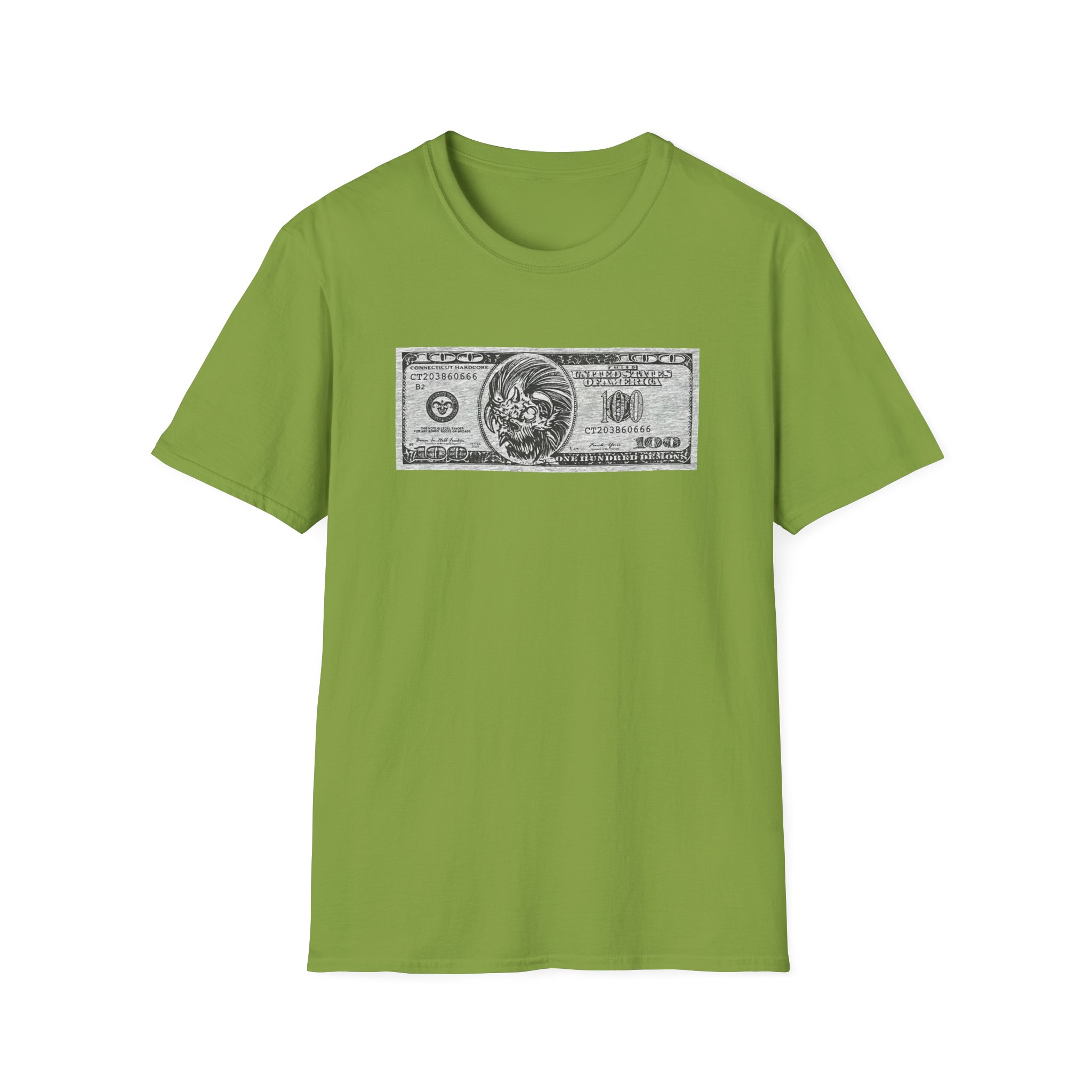 The 100 Demons Connecticut Hardcore unisex soft-style t-shirt puts a new spin on casual comfort. Made from very soft materials, this tee is 100% cotton for solid colors. Heather colors and sports grey include polyester. The shoulders have twill tape for improved durability. There are no side seams. The collar is made with ribbed knitting to prevent curling damage.