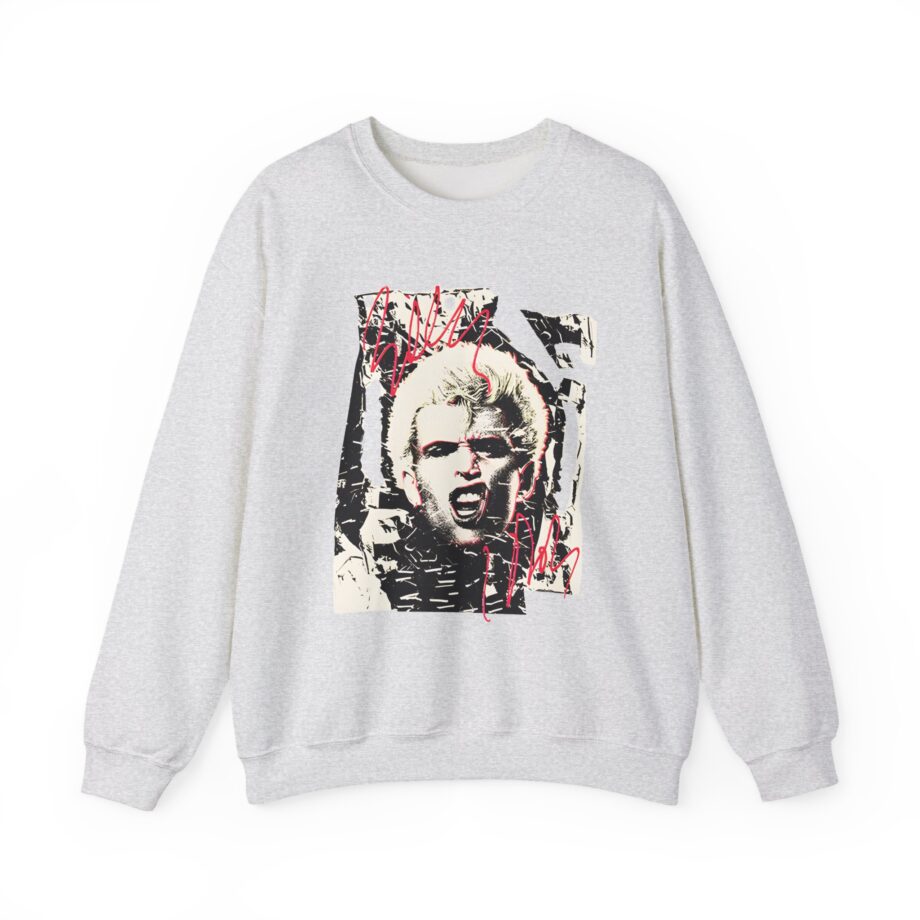 Ideal for any situation, a Billy Idol Shattered Photo unisex heavy blend crewneck sweatshirt is pure comfort. These garments are made from polyester and cotton. This combination helps designs come out looking fresh and beautiful. The collar is ribbed knit, so it retains its shape even after washing. There are no itchy side seams on these sweaters.