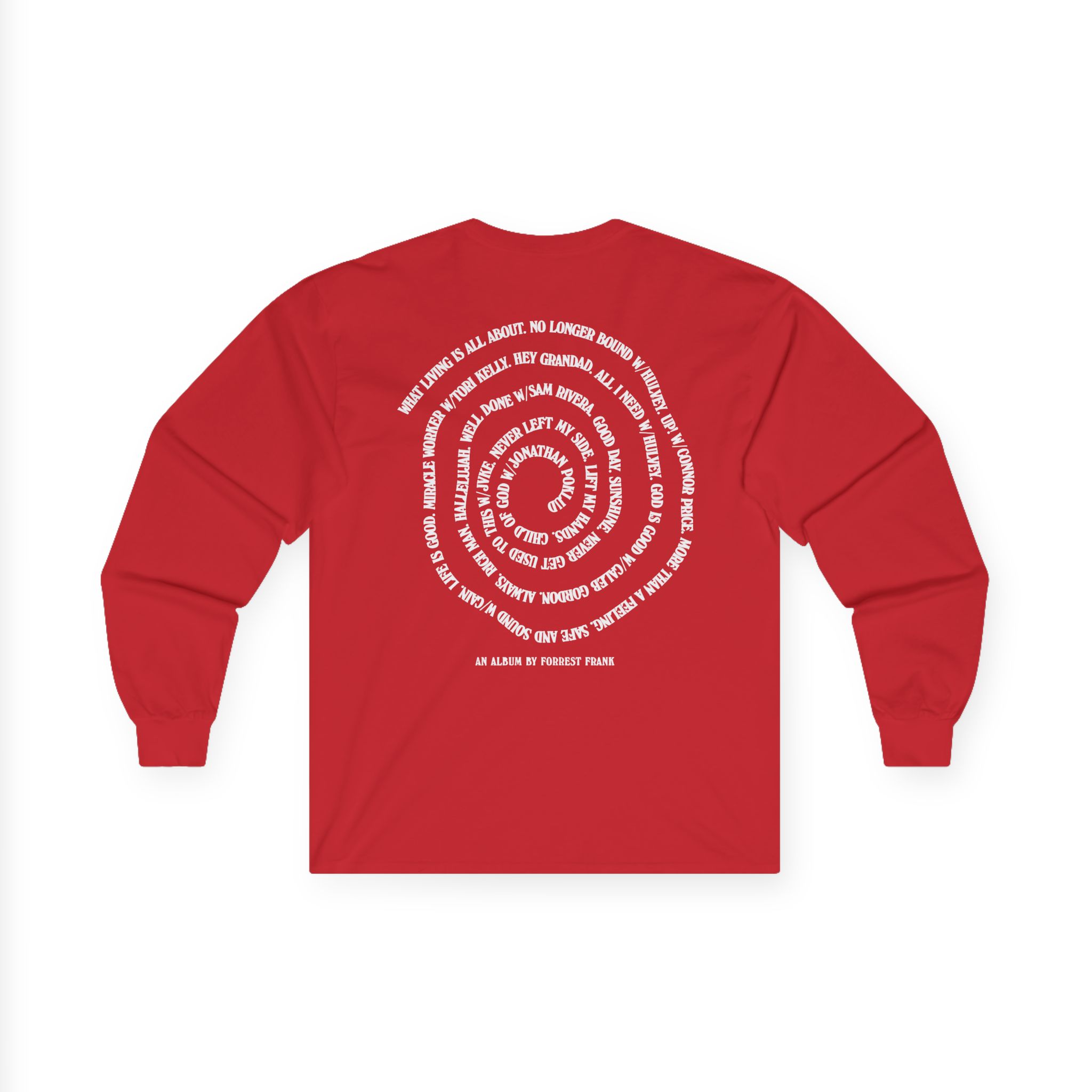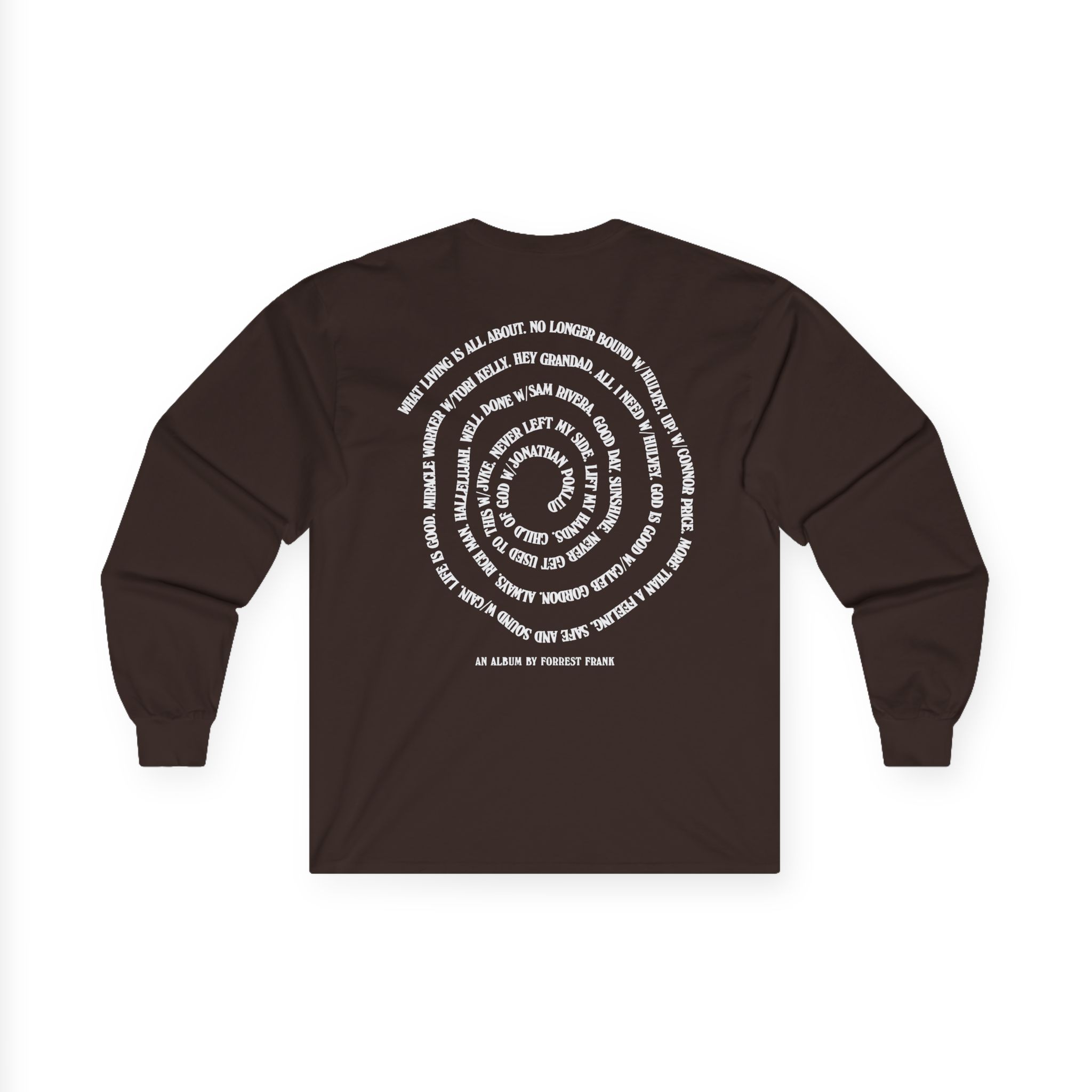 A bit more formal than a standard-issue t-shirt, the Forrest Frank Cog Spiral ultra cotton long sleeve tee is a clear comfort winner. The sleeves also act as a nice frame. There are no side seams. The shoulders are taped for improved durability. This makes for a good fitting around the shoulders and neck. The cotton used for these shirts is environmentally friendly.