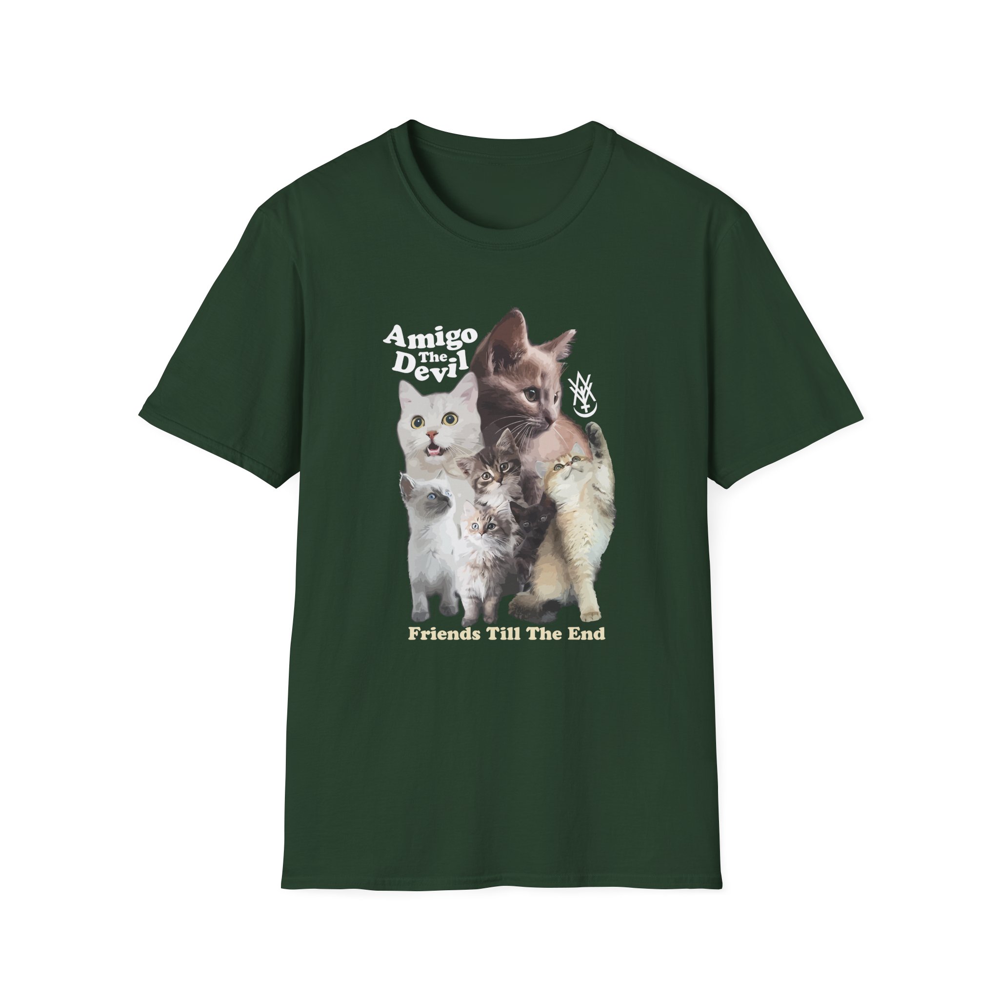 The Amigo the Devil Too Many Puppies unisex soft-style t-shirt puts a new spin on casual comfort. Made from very soft materials, this tee is 100% cotton for solid colors. Heather colors and sports grey include polyester. The shoulders have twill tape for improved durability. There are no side seams. The collar is made with ribbed knitting to prevent curling damage.