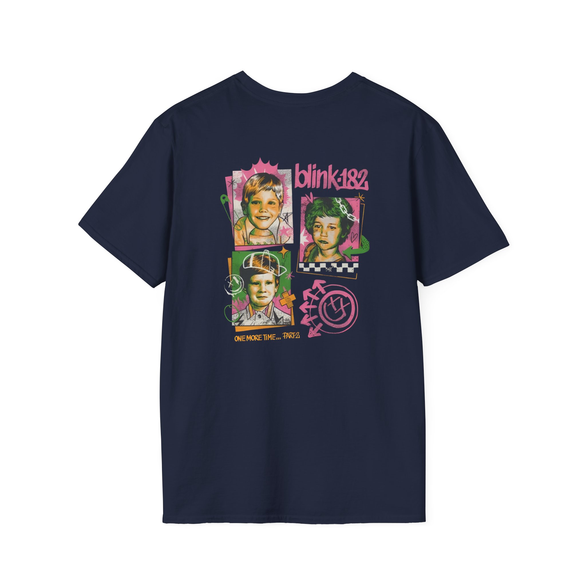 The Blink 182 One More Time…part 2 unisex soft-style t-shirt puts a new spin on casual comfort. Made from very soft materials, this tee is 100% cotton for solid colors. Heather colors and sports grey include polyester. The shoulders have twill tape for improved durability. There are no side seams. The collar is made with ribbed knitting to prevent curling damage.