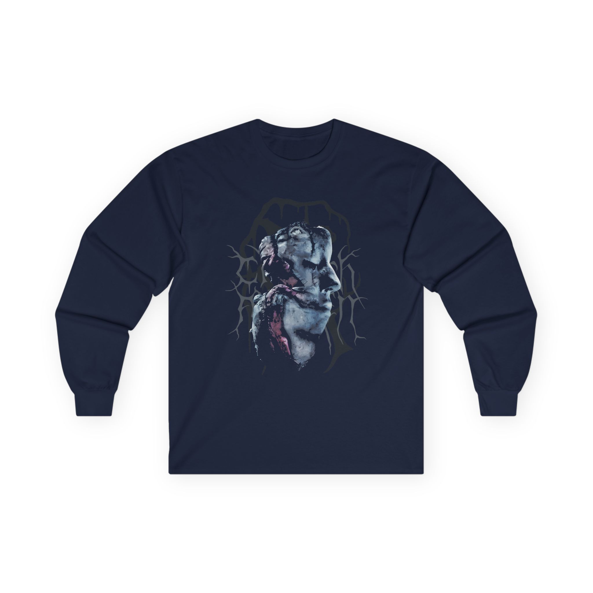 A bit more formal than a standard-issue t-shirt, the Carach Angren Head ultra cotton long sleeve tee is a clear comfort winner. The sleeves also act as a nice frame. There are no side seams. The shoulders are taped for improved durability. This makes for a good fitting around the shoulders and neck. The cotton used for these shirts is environmentally friendly.