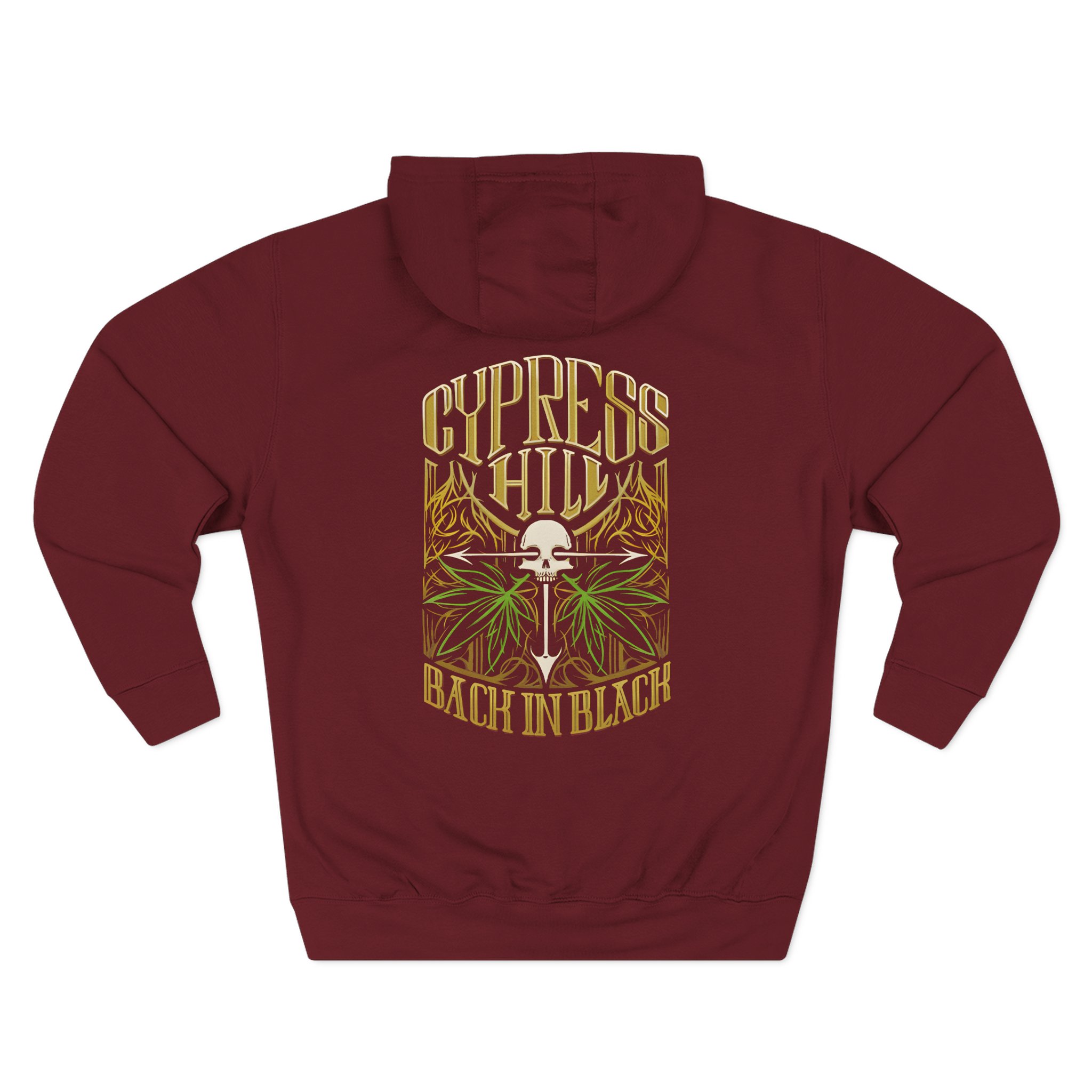 Beat the cold with this Cypress Hill Back In Black premium pullover hoodie that’s just the right layer of warm and cozy. Made with three-panel fleece lining, this pullover is double stitched for durability and roomy. Pick one in your favorite color to match your style.