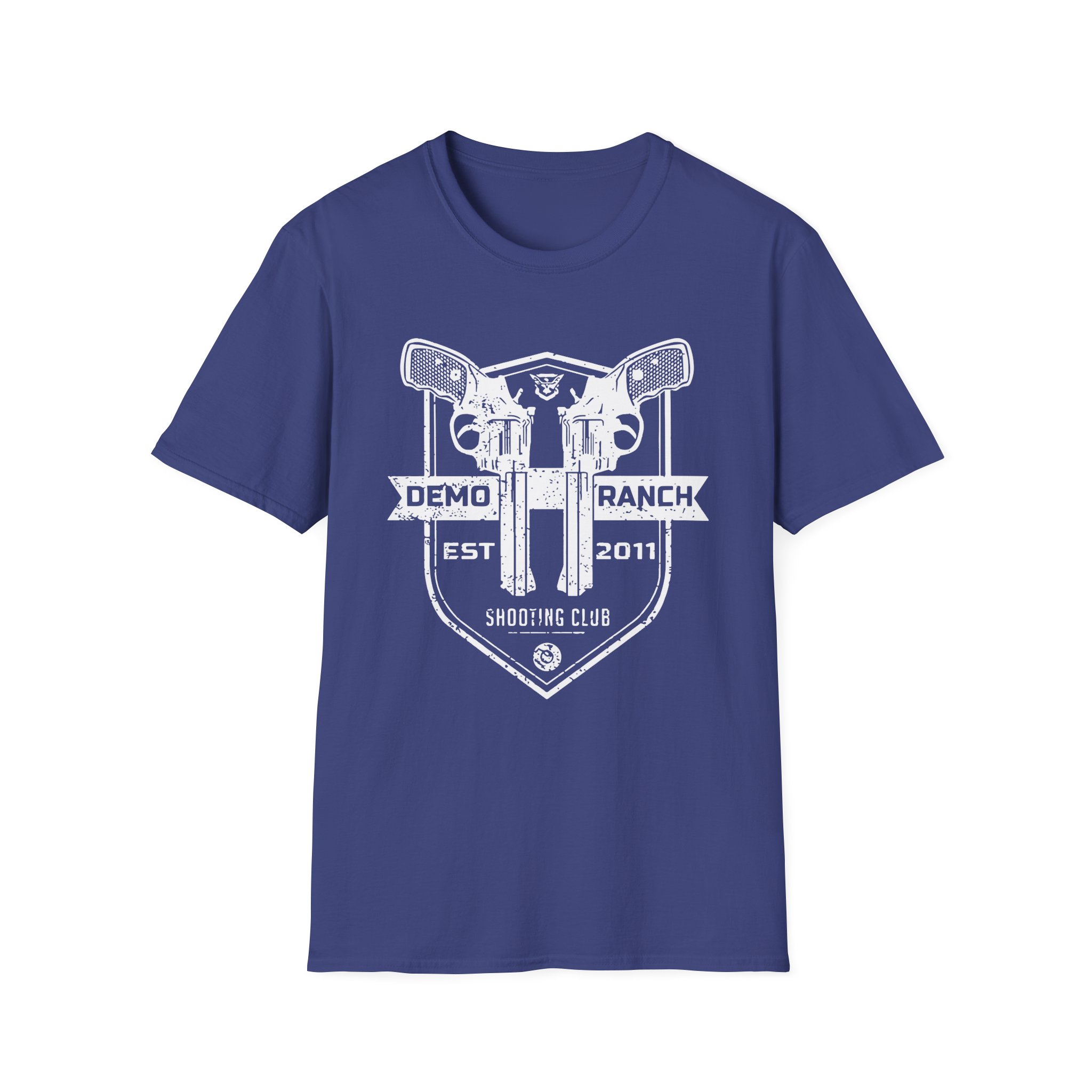 The Demo Ranch Shooting Club Pocket unisex soft-style t-shirt puts a new spin on casual comfort. Made from very soft materials, this tee is 100% cotton for solid colors. Heather colors and sports grey include polyester. The shoulders have twill tape for improved durability. There are no side seams. The collar is made with ribbed knitting to prevent curling damage.