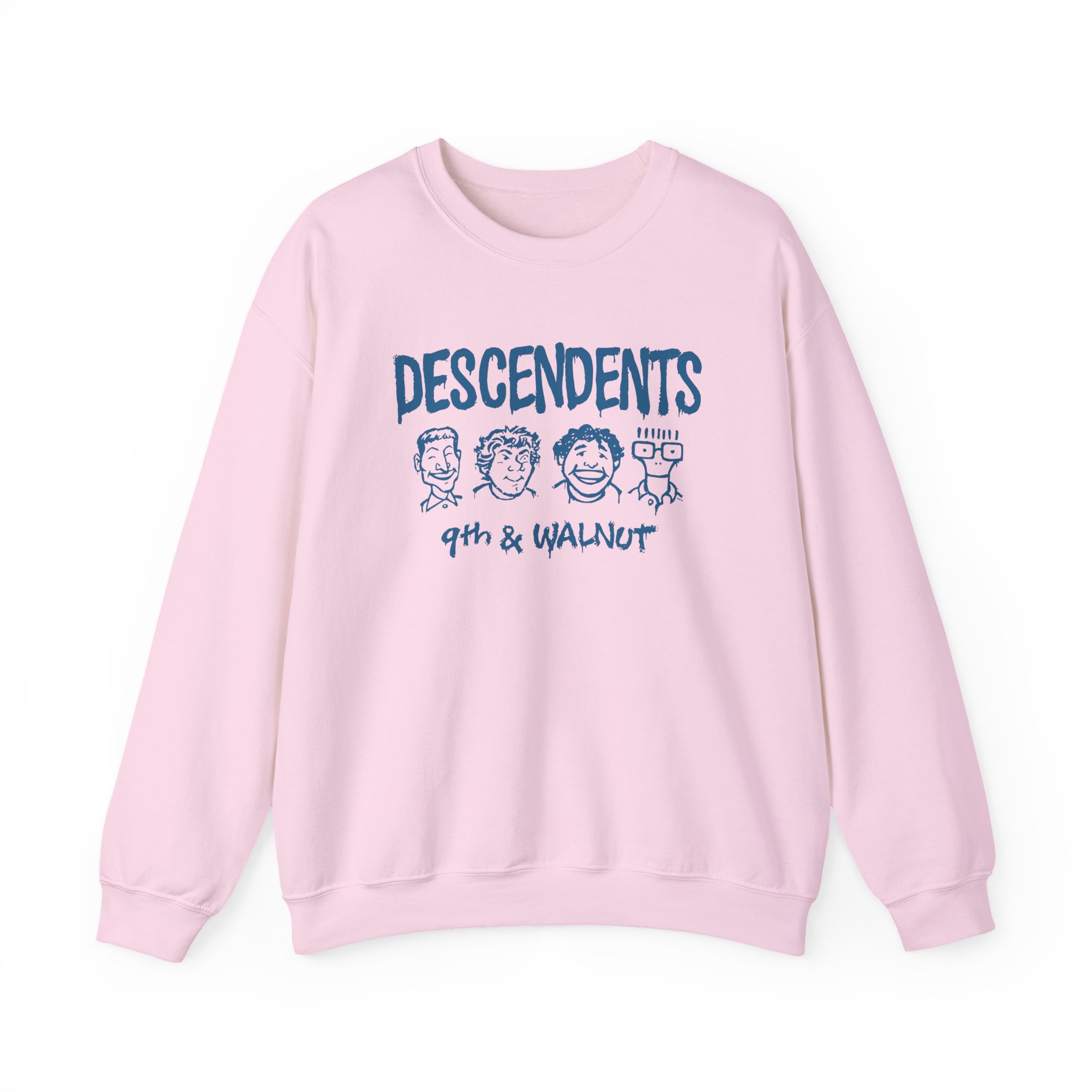 Ideal for any situation, a Descendents 9th & Walnut unisex heavy blend crewneck sweatshirt is pure comfort. These garments are made from polyester and cotton. This combination helps designs come out looking fresh and beautiful. The collar is ribbed knit, so it retains its shape even after washing. There are no itchy side seams on these sweaters.
