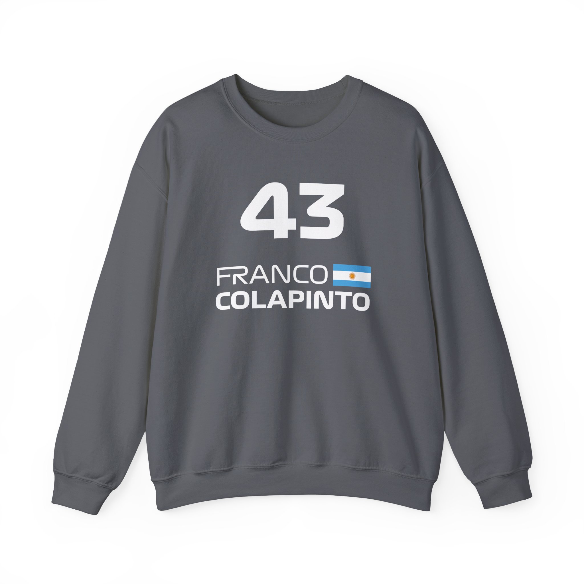 Ideal for any situation, a Franco Colapinto unisex heavy blend crewneck sweatshirt is pure comfort. These garments are made from polyester and cotton. This combination helps designs come out looking fresh and beautiful. The collar is ribbed knit, so it retains its shape even after washing. There are no itchy side seams on these sweaters.