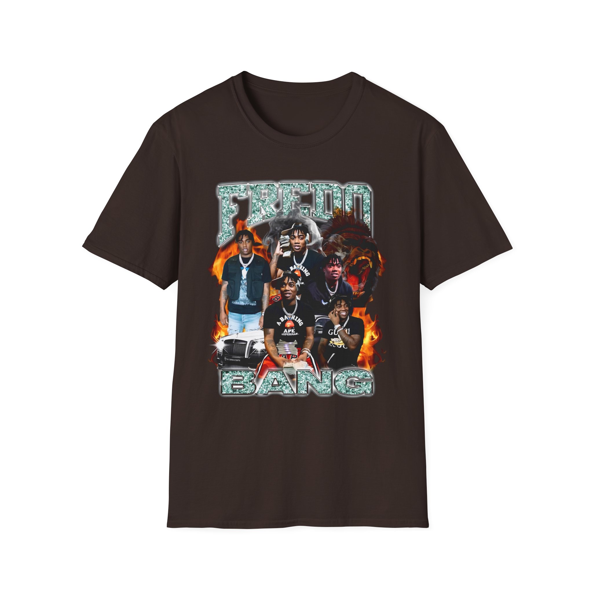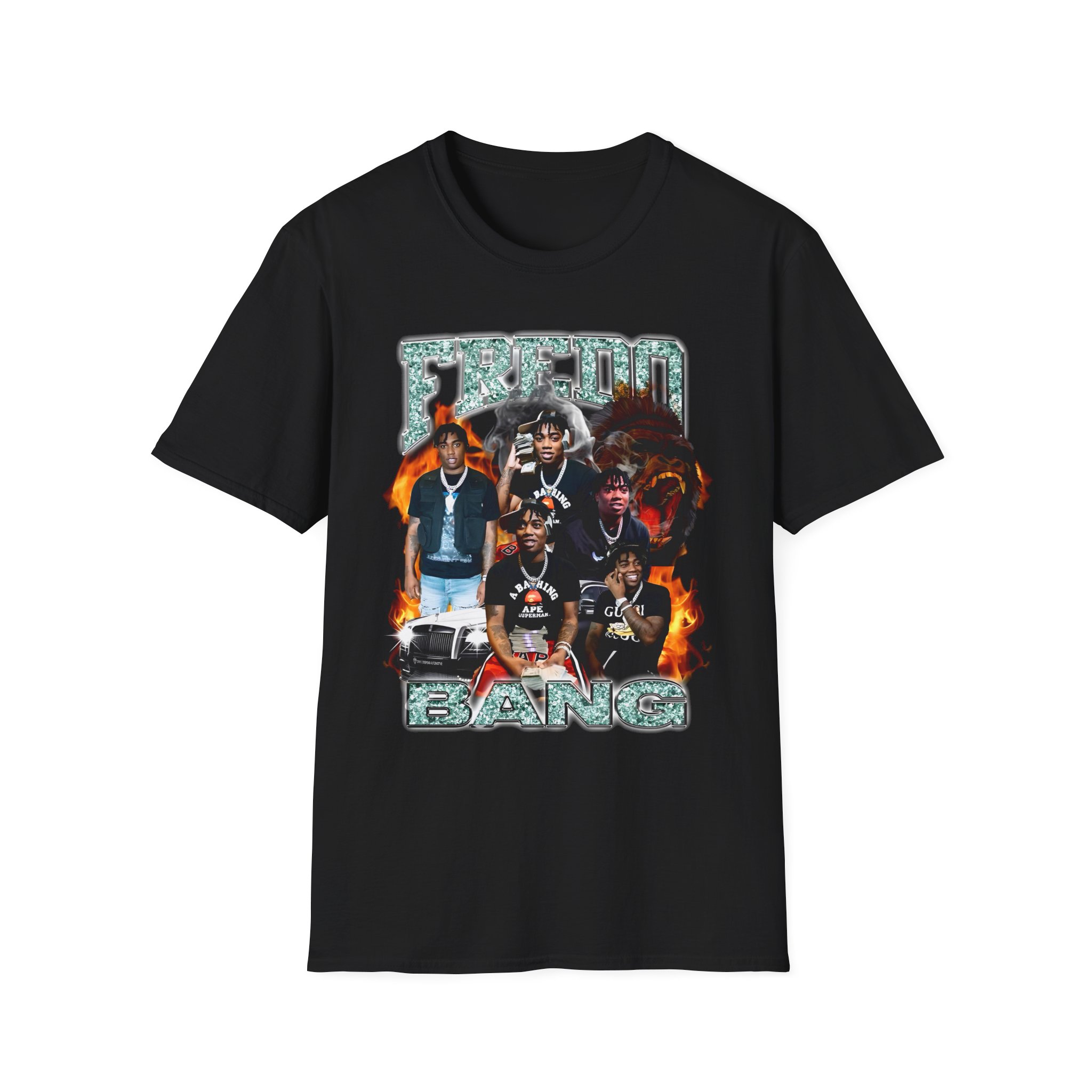 The Fredo Bang unisex soft-style t-shirt puts a new spin on casual comfort. Made from very soft materials, this tee is 100% cotton for solid colors. Heather colors and sports grey include polyester. The shoulders have twill tape for improved durability. There are no side seams. The collar is made with ribbed knitting to prevent curling damage.