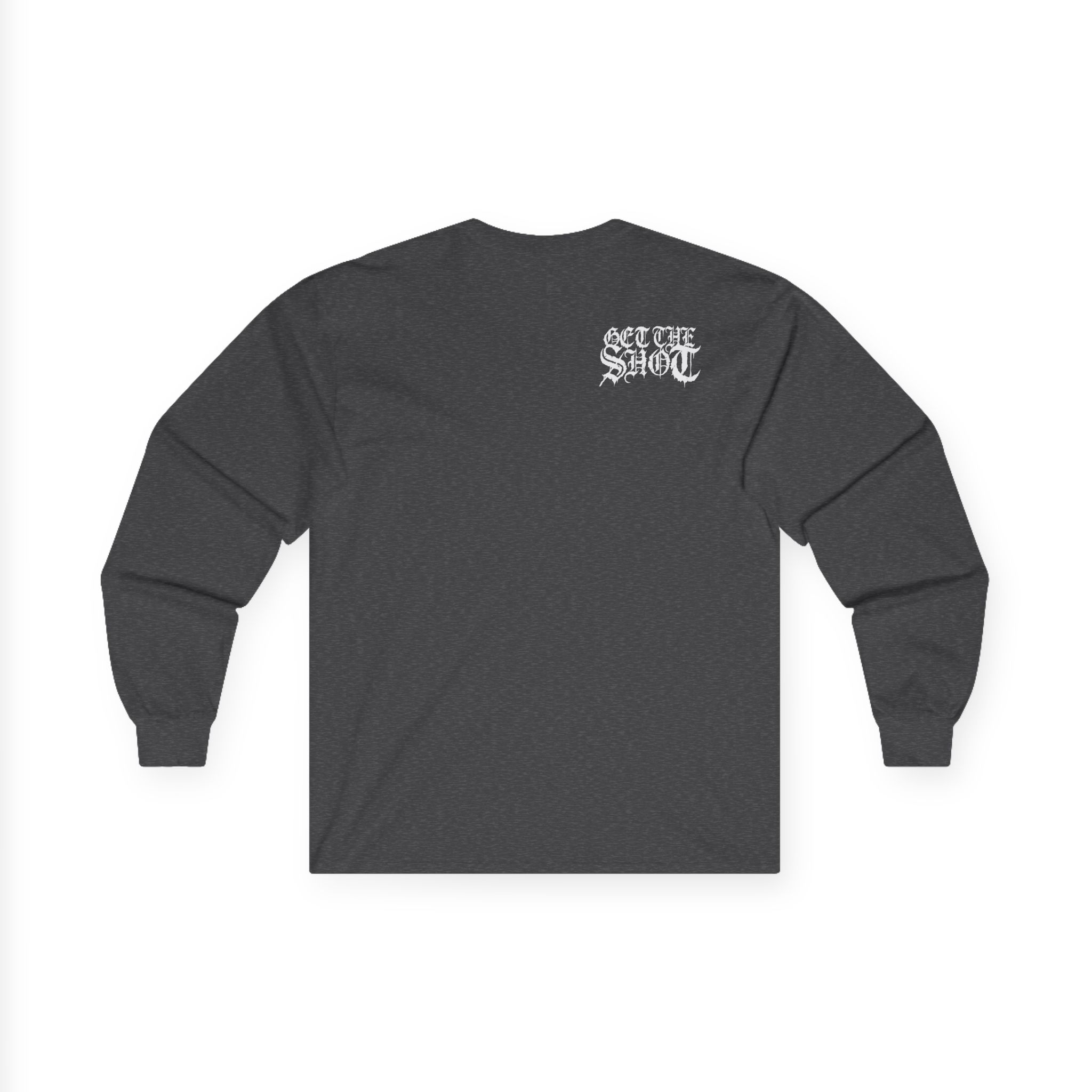 A bit more formal than a standard-issue t-shirt, the Get the Shot No Peace in Hell ultra cotton long sleeve tee is a clear comfort winner. The sleeves also act as a nice frame. There are no side seams. The shoulders are taped for improved durability. This makes for a good fitting around the shoulders and neck. The cotton used for these shirts is environmentally friendly.