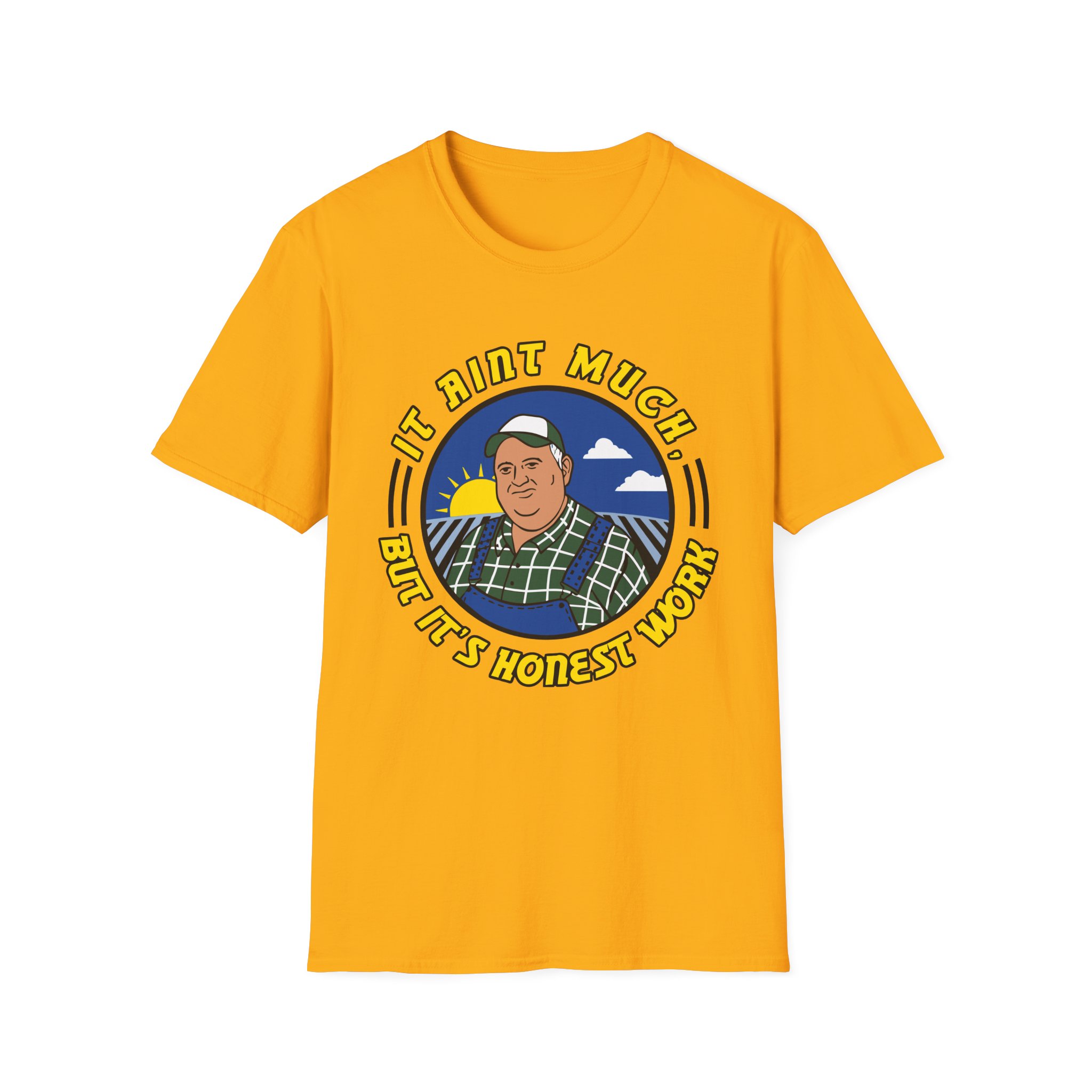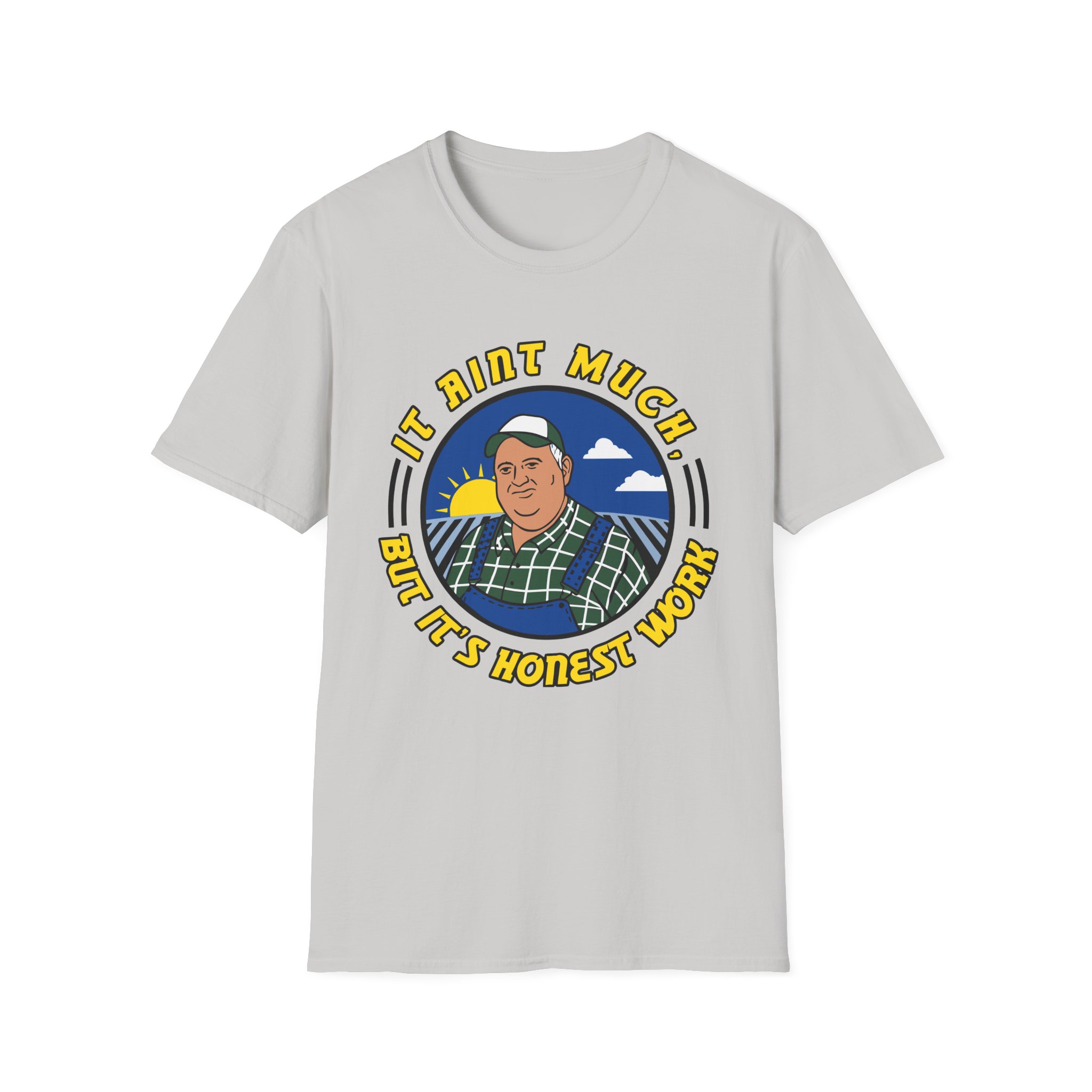 The It Ain’t Much but It’s Honest Work unisex soft-style t-shirt puts a new spin on casual comfort. Made from very soft materials, this tee is 100% cotton for solid colors. Heather colors and sports grey include polyester. The shoulders have twill tape for improved durability. There are no side seams. The collar is made with ribbed knitting to prevent curling damage.