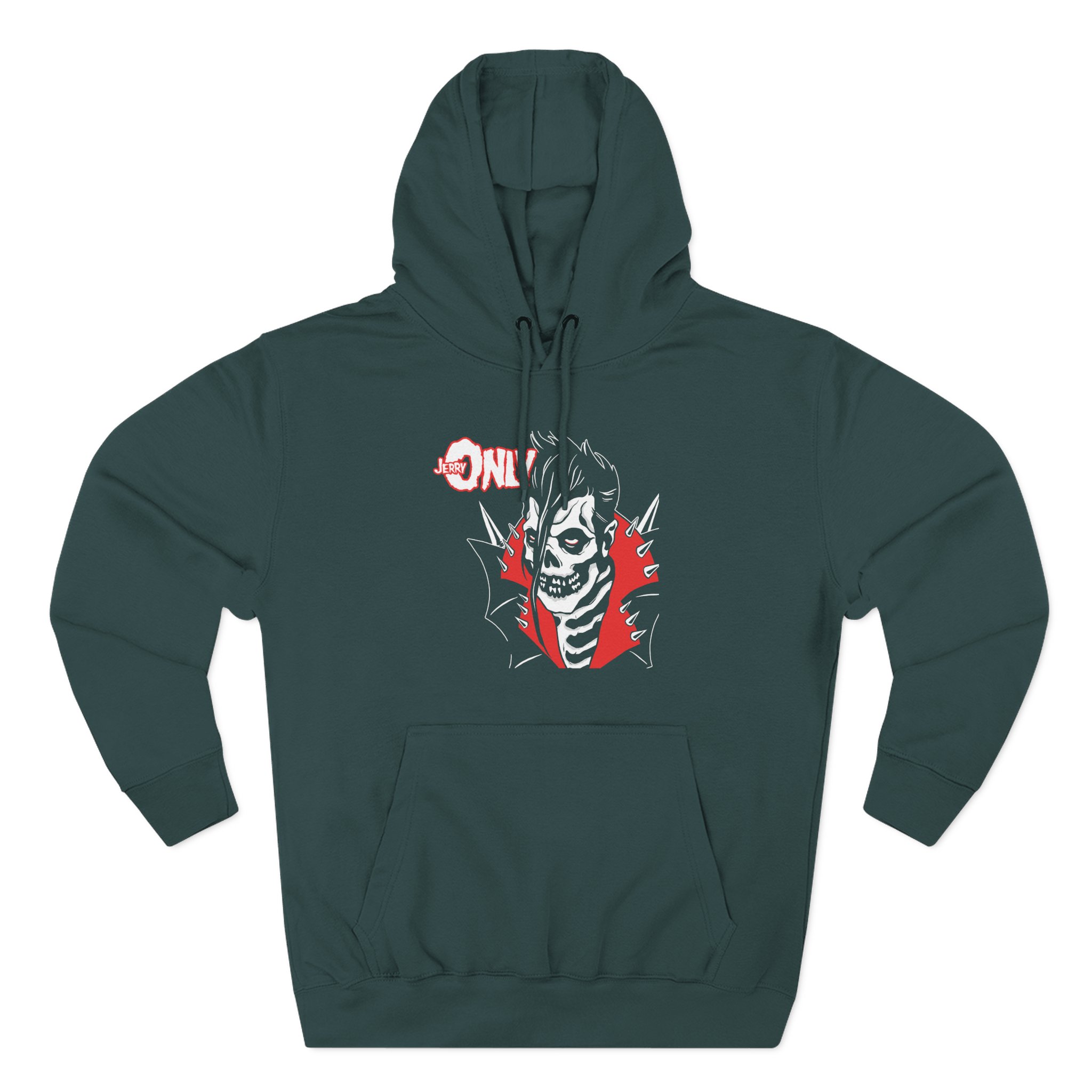 Beat the cold with this Misfits Jerry Only “Anti-hero” premium pullover hoodie that’s just the right layer of warm and cozy. Made with three-panel fleece lining, this pullover is double stitched for durability and roomy. Pick one in your favorite color to match your style.