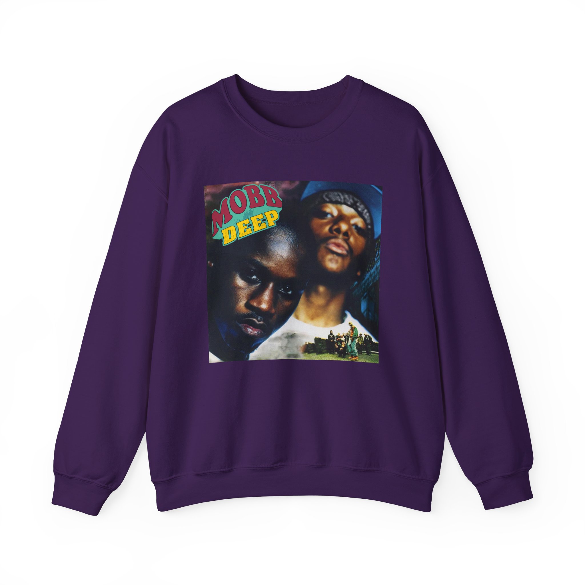 Ideal for any situation, a Mobb Deep Shook Ones unisex heavy blend crewneck sweatshirt is pure comfort. These garments are made from polyester and cotton. This combination helps designs come out looking fresh and beautiful. The collar is ribbed knit, so it retains its shape even after washing. There are no itchy side seams on these sweaters.