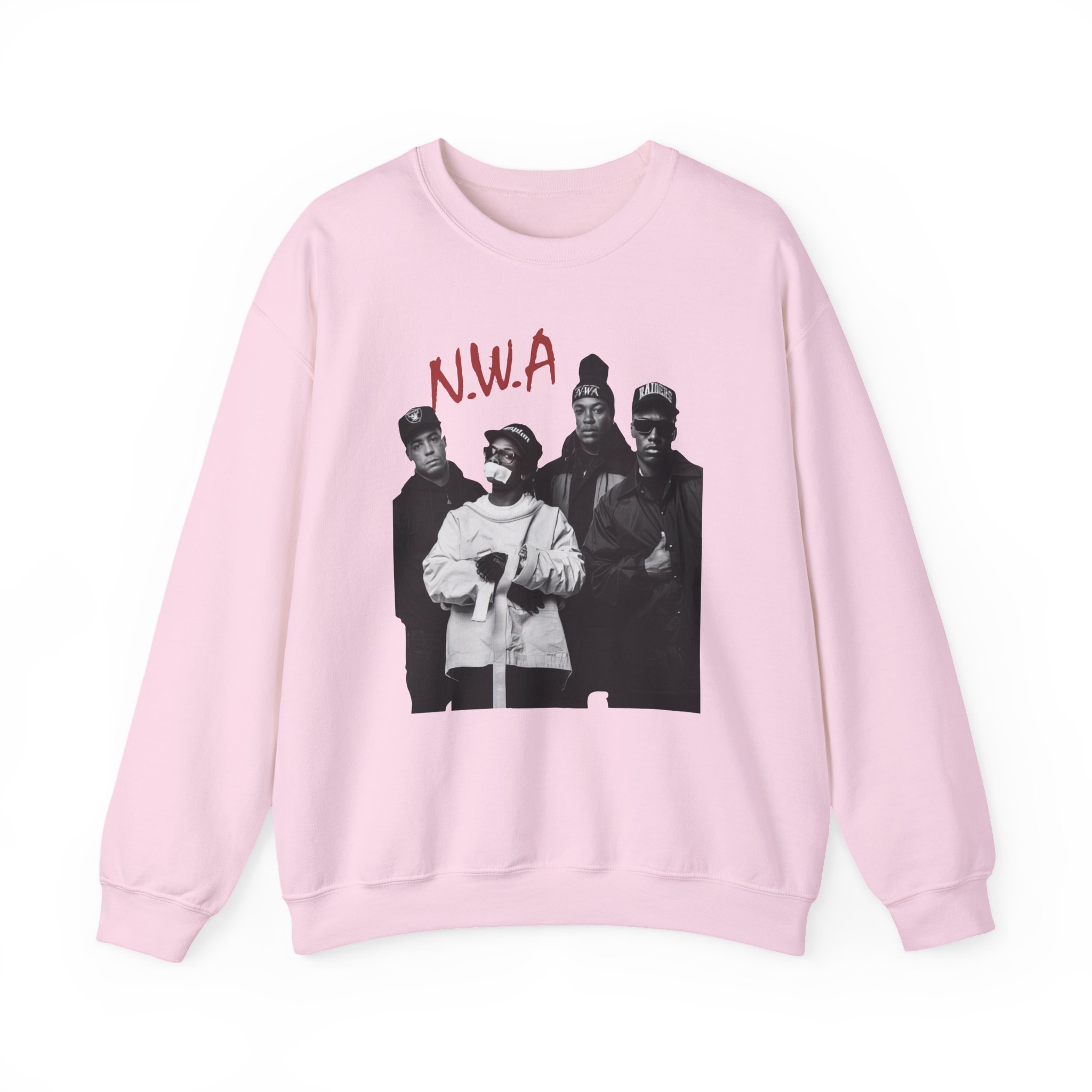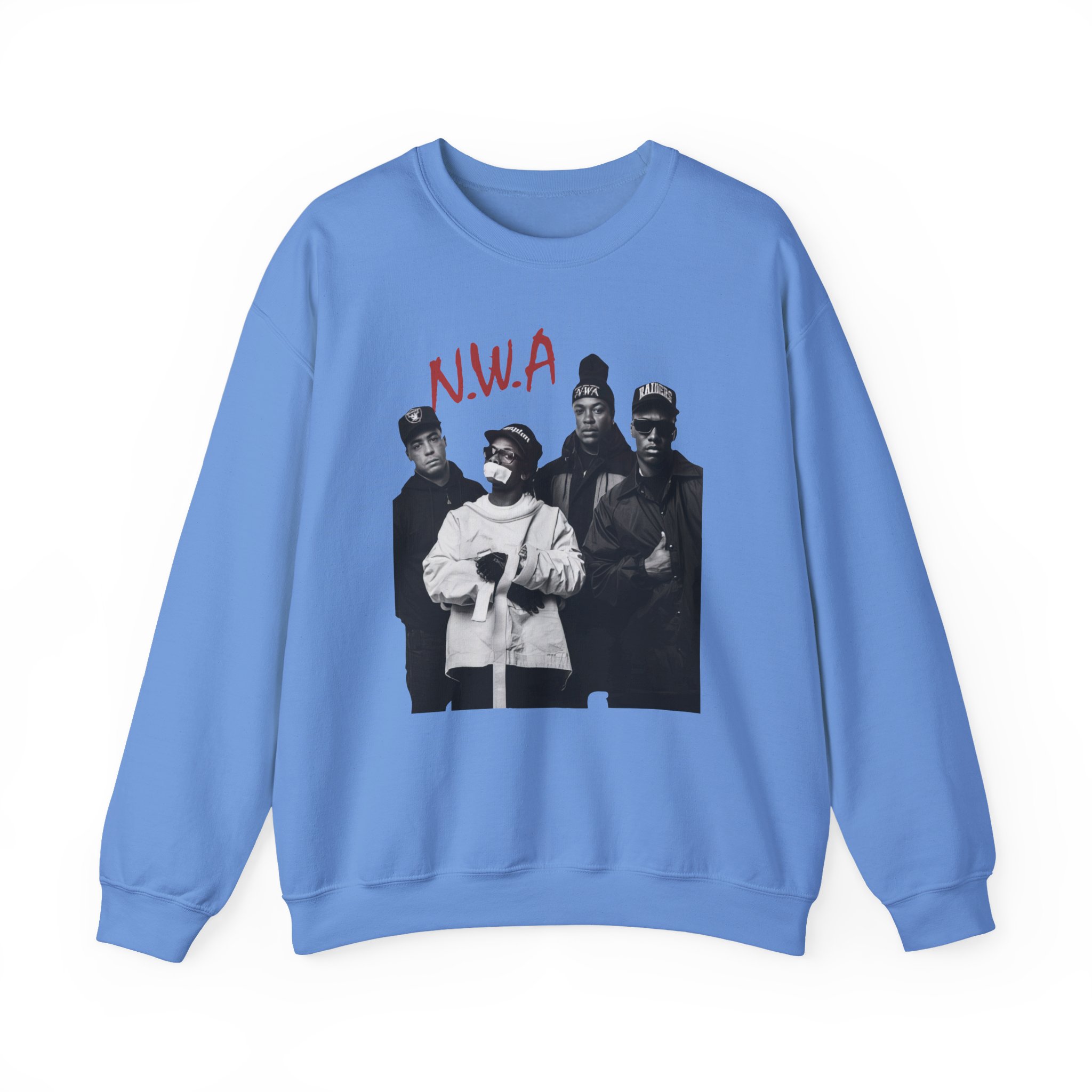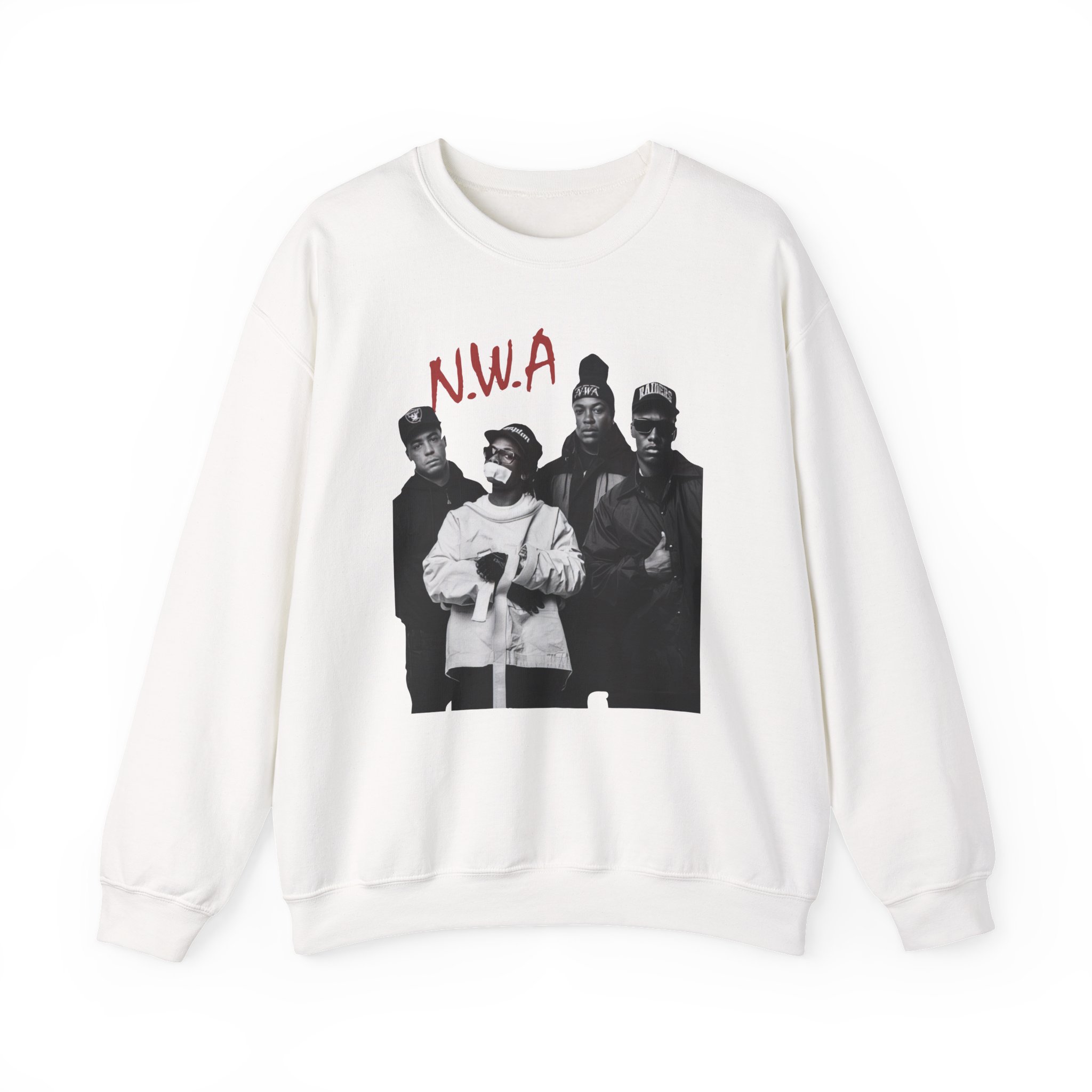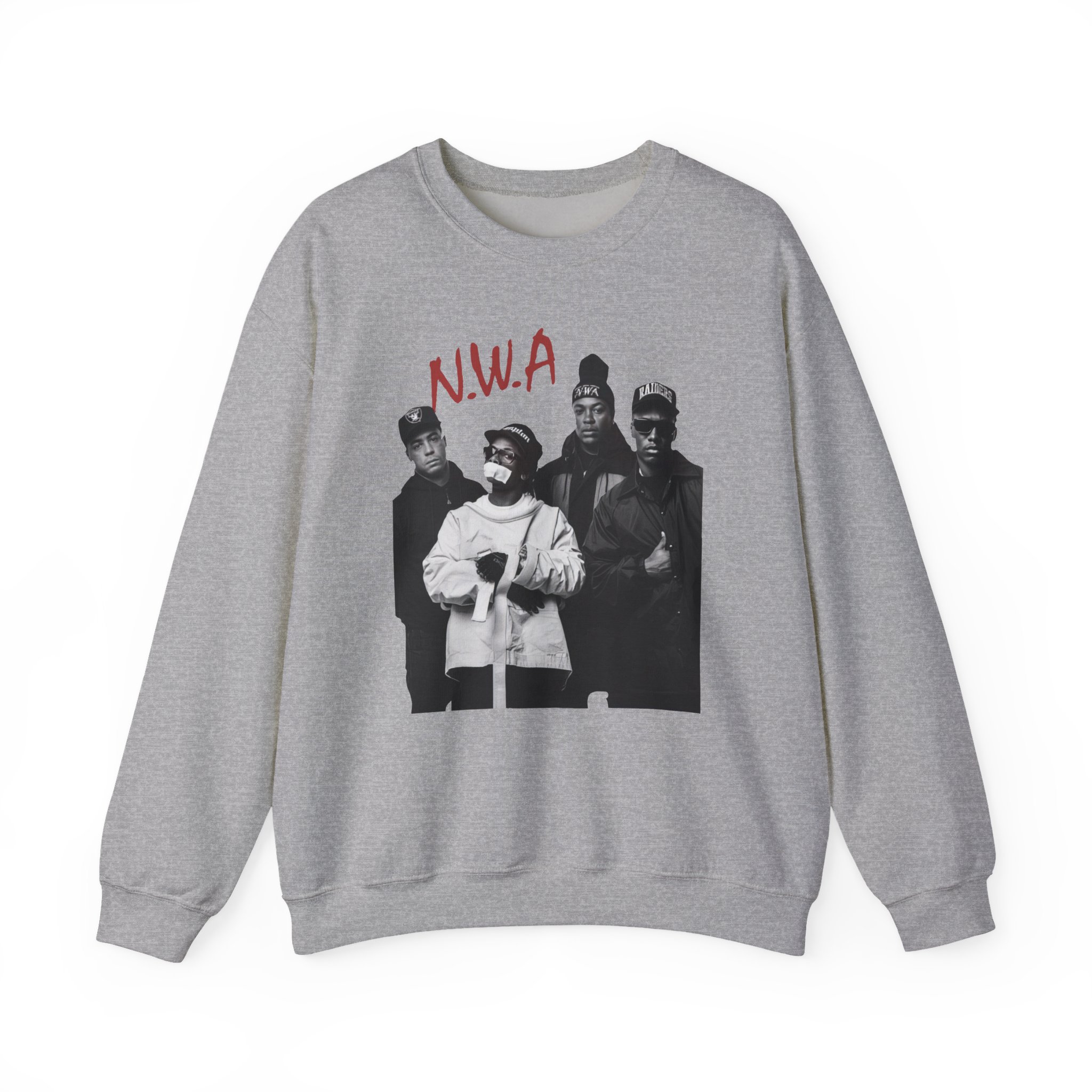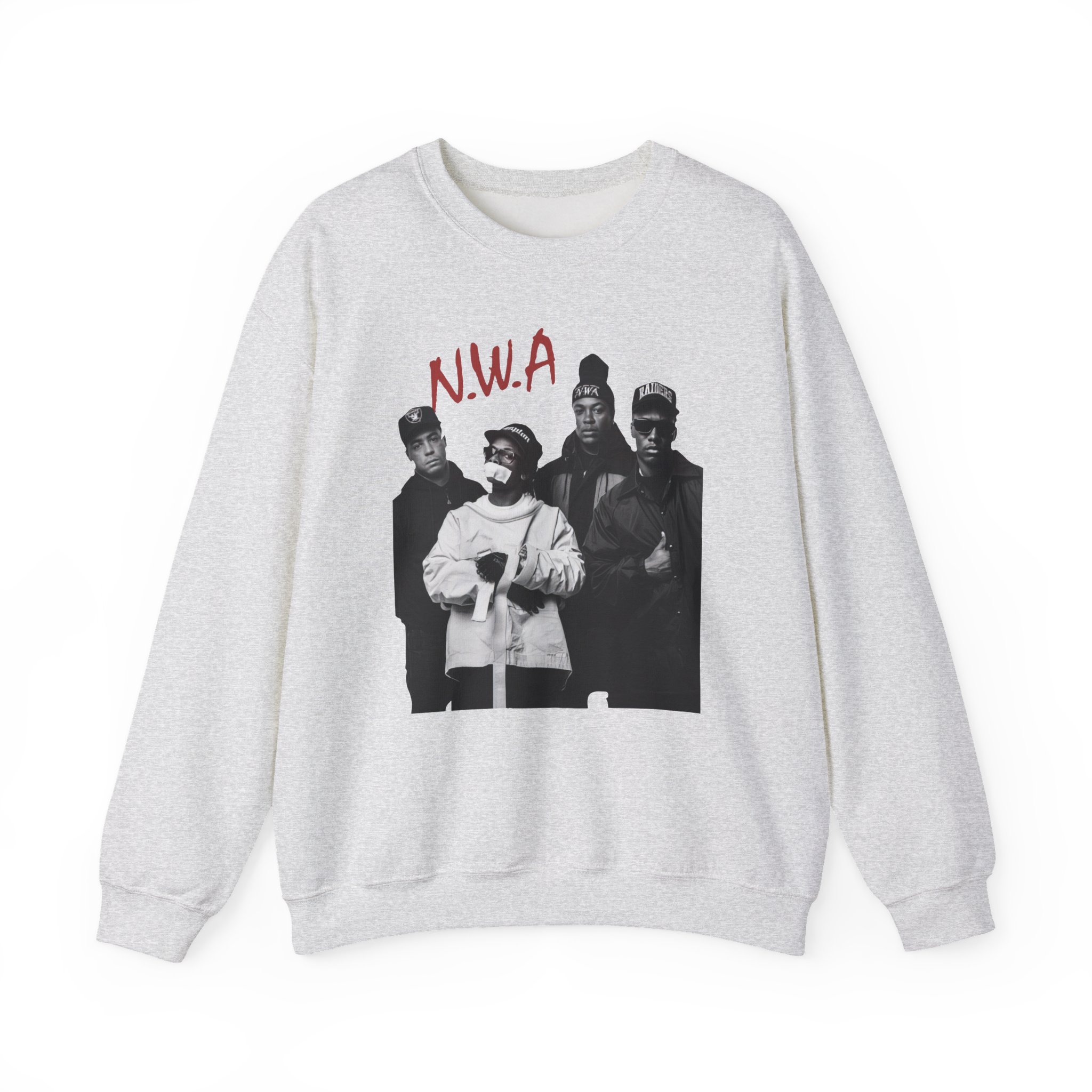 Ideal for any situation, a NWA Rap unisex heavy blend crewneck sweatshirt is pure comfort. These garments are made from polyester and cotton. This combination helps designs come out looking fresh and beautiful. The collar is ribbed knit, so it retains its shape even after washing. There are no itchy side seams on these sweaters.