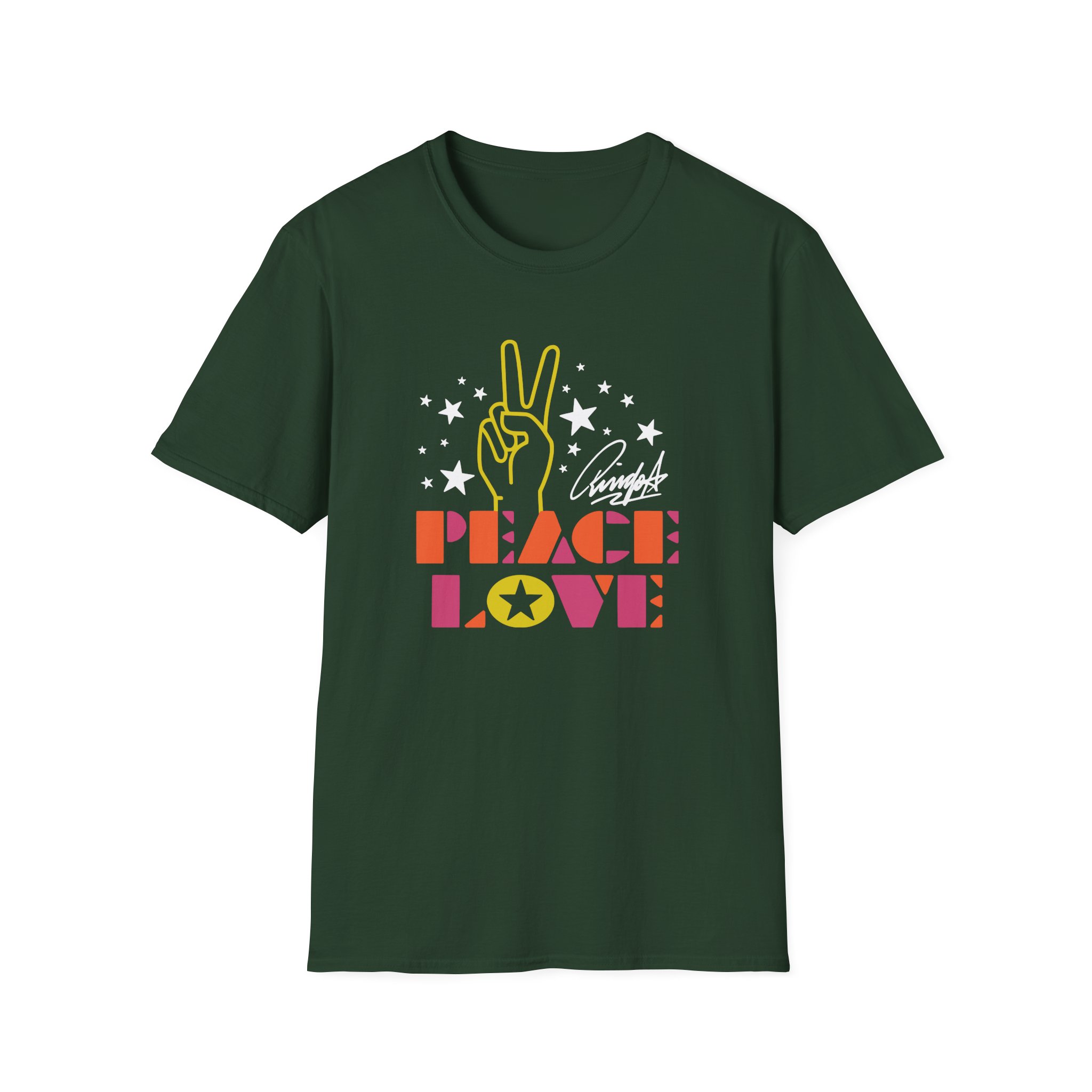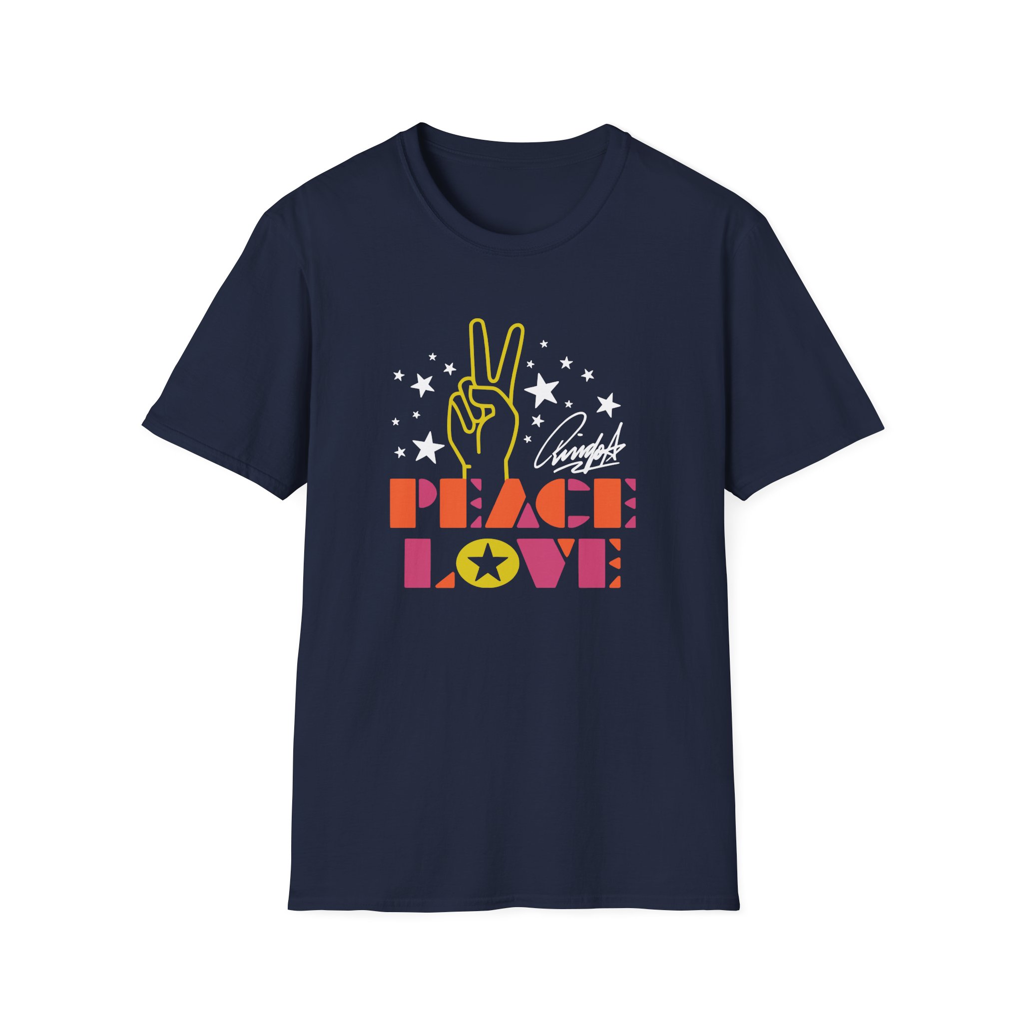 The Ringo Starr Peace & Love Peace Sign unisex soft-style t-shirt puts a new spin on casual comfort. Made from very soft materials, this tee is 100% cotton for solid colors. Heather colors and sports grey include polyester. The shoulders have twill tape for improved durability. There are no side seams. The collar is made with ribbed knitting to prevent curling damage.