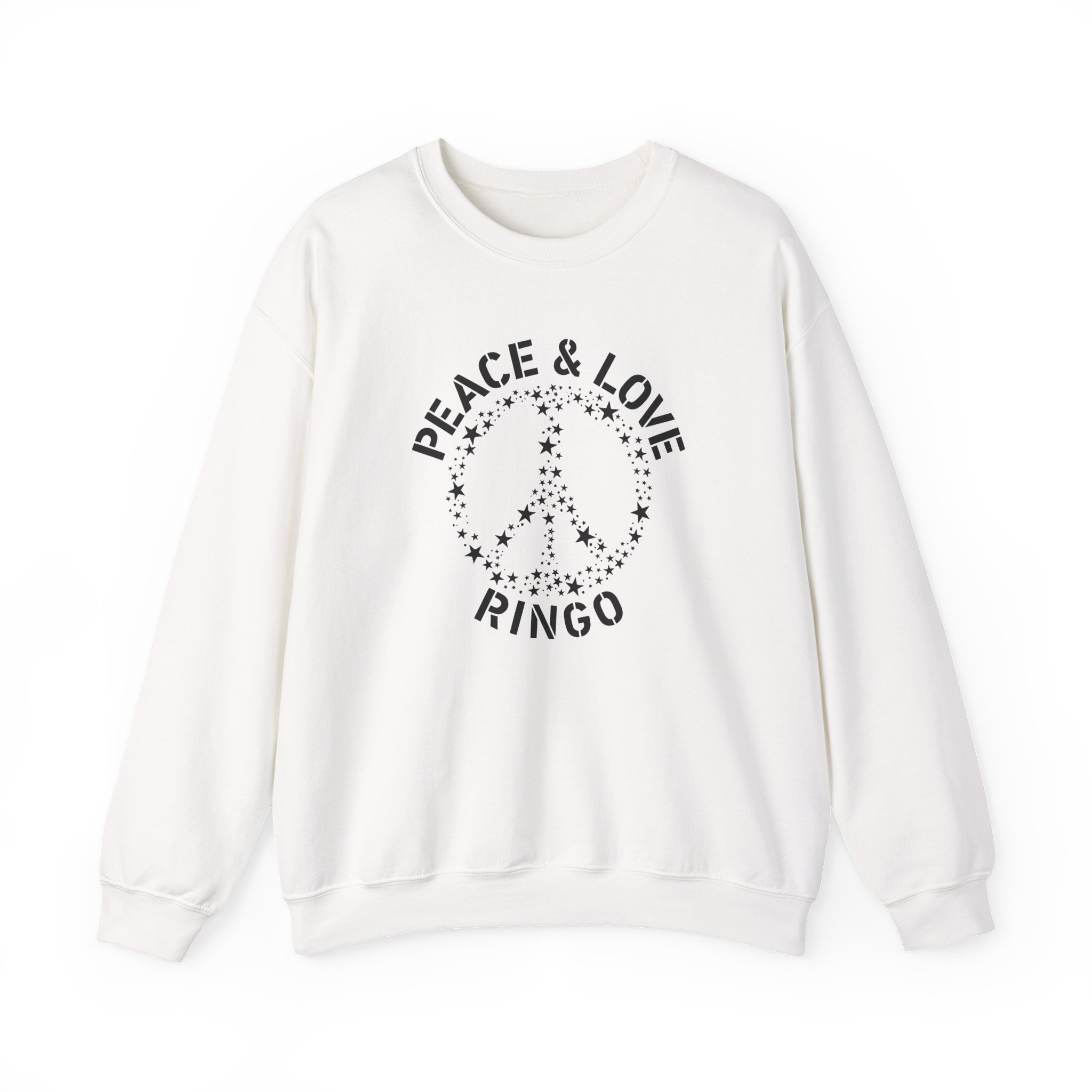Ideal for any situation, a Ringo Starr Peace & Love unisex heavy blend crewneck sweatshirt is pure comfort. These garments are made from polyester and cotton. This combination helps designs come out looking fresh and beautiful. The collar is ribbed knit, so it retains its shape even after washing. There are no itchy side seams on these sweaters.