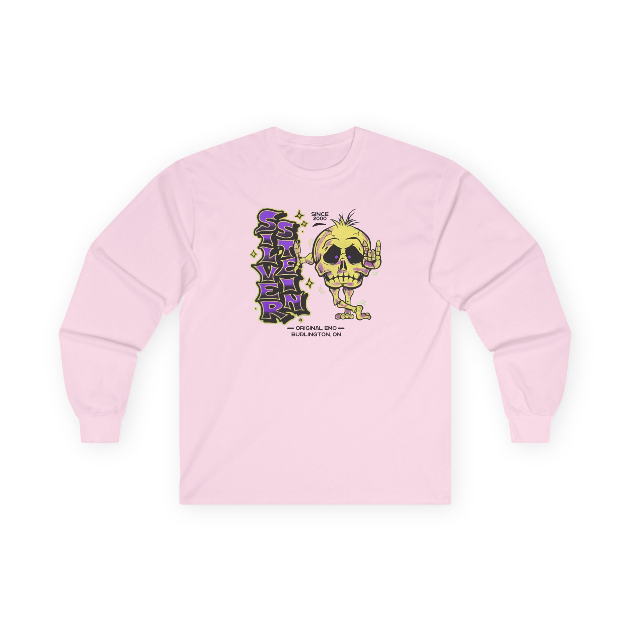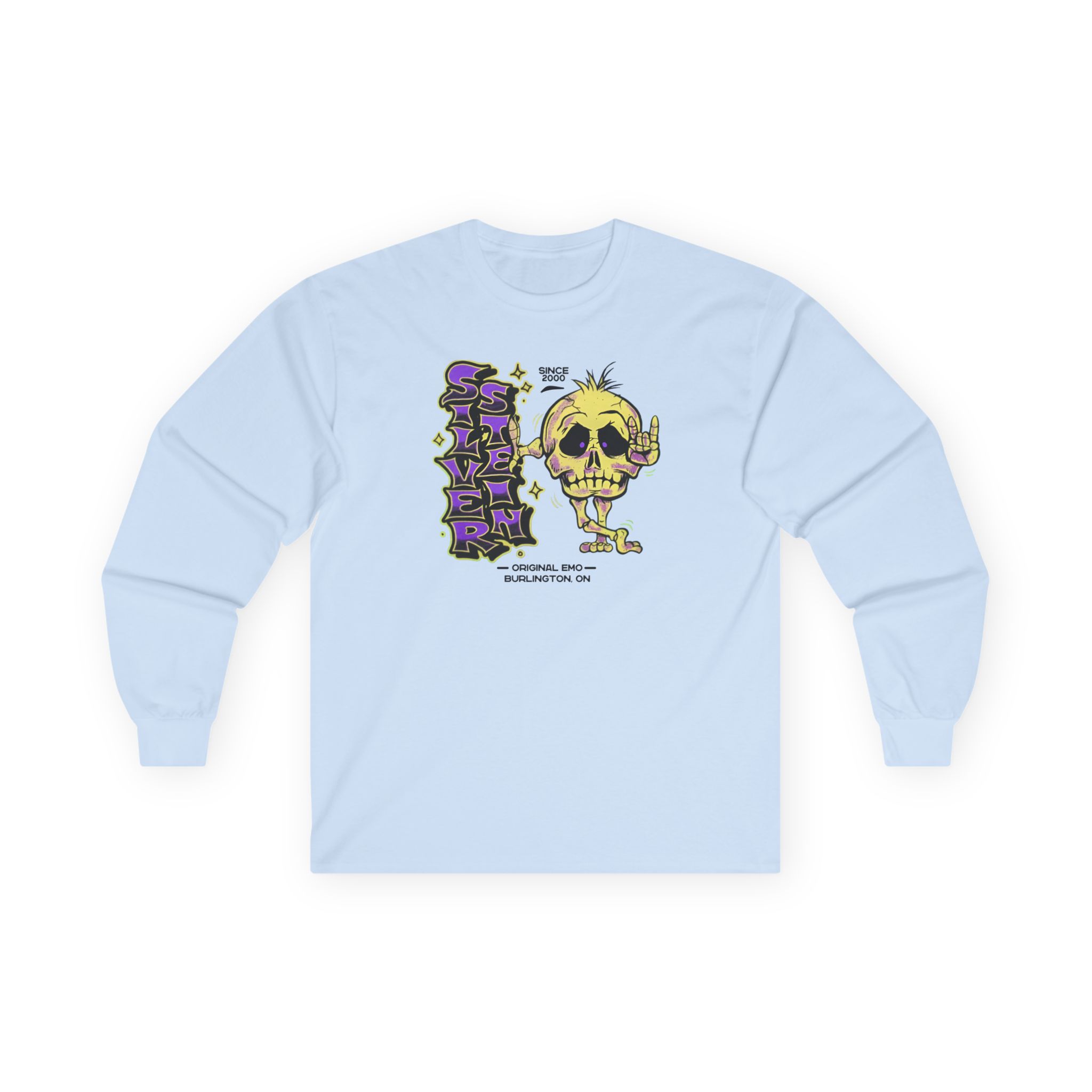 A bit more formal than a standard-issue t-shirt, the Silverstein Skeleton ultra cotton long sleeve tee is a clear comfort winner. The sleeves also act as a nice frame. There are no side seams. The shoulders are taped for improved durability. This makes for a good fitting around the shoulders and neck. The cotton used for these shirts is environmentally friendly.