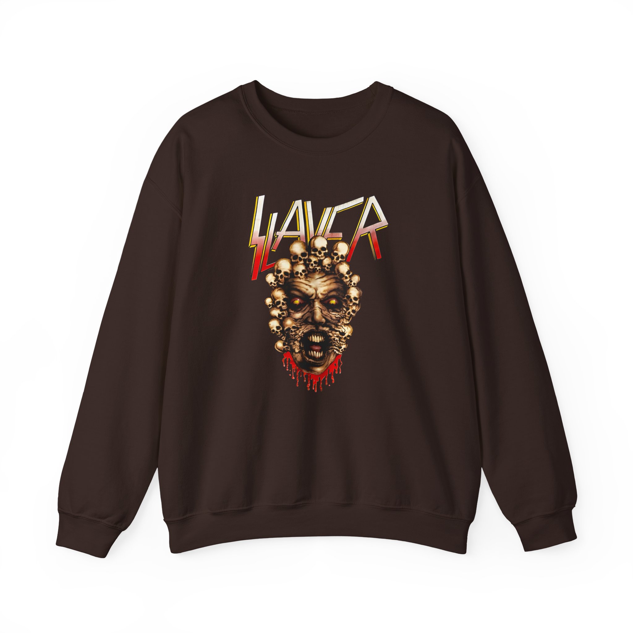 Ideal for any situation, a Slayer Multiplicity unisex heavy blend crewneck sweatshirt is pure comfort. These garments are made from polyester and cotton. This combination helps designs come out looking fresh and beautiful. The collar is ribbed knit, so it retains its shape even after washing. There are no itchy side seams on these sweaters.