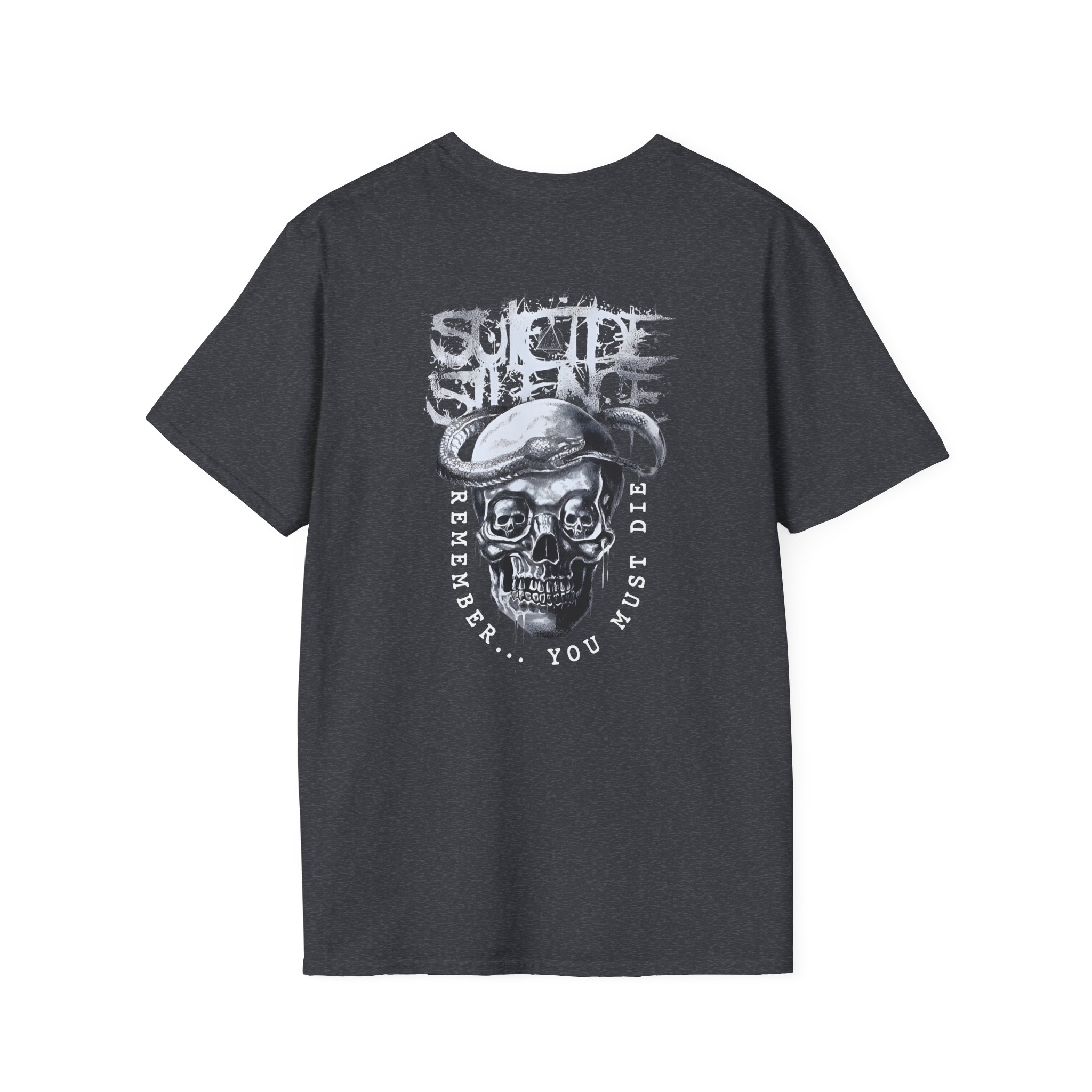 The Suicide Silence Rymd Snake Skull unisex soft-style t-shirt puts a new spin on casual comfort. Made from very soft materials, this tee is 100% cotton for solid colors. Heather colors and sports grey include polyester. The shoulders have twill tape for improved durability. There are no side seams. The collar is made with ribbed knitting to prevent curling damage.