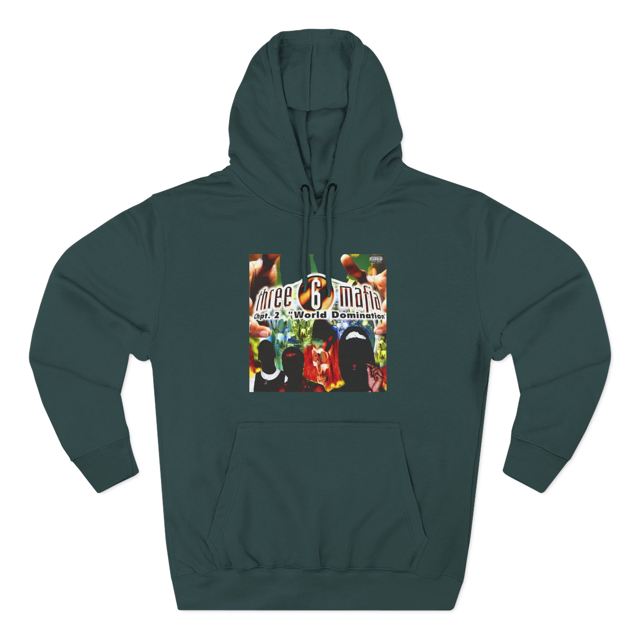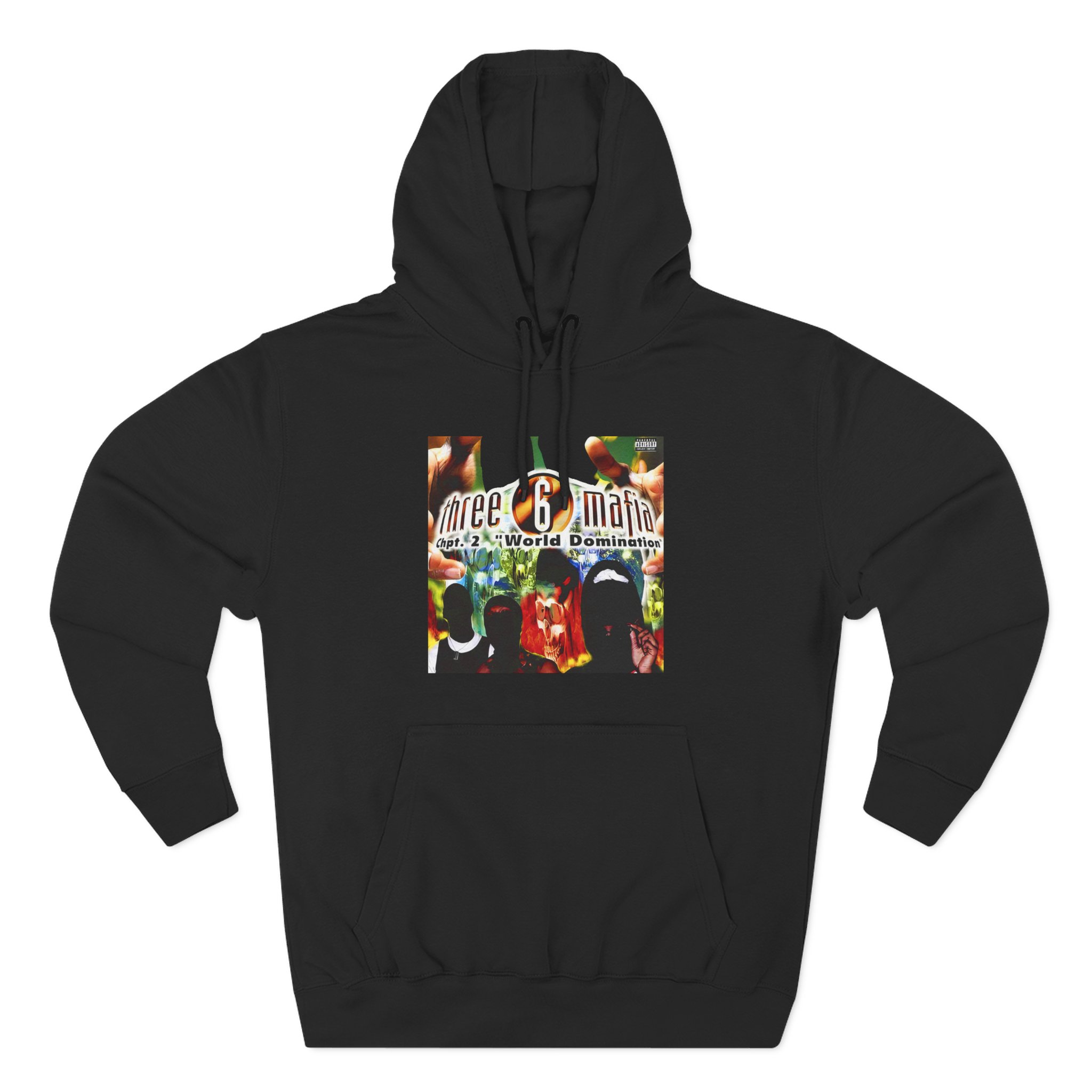 Beat the cold with this Three 6 Mafia Cover WD premium pullover hoodie that’s just the right layer of warm and cozy. Made with three-panel fleece lining, this pullover is double stitched for durability and roomy. Pick one in your favorite color to match your style.