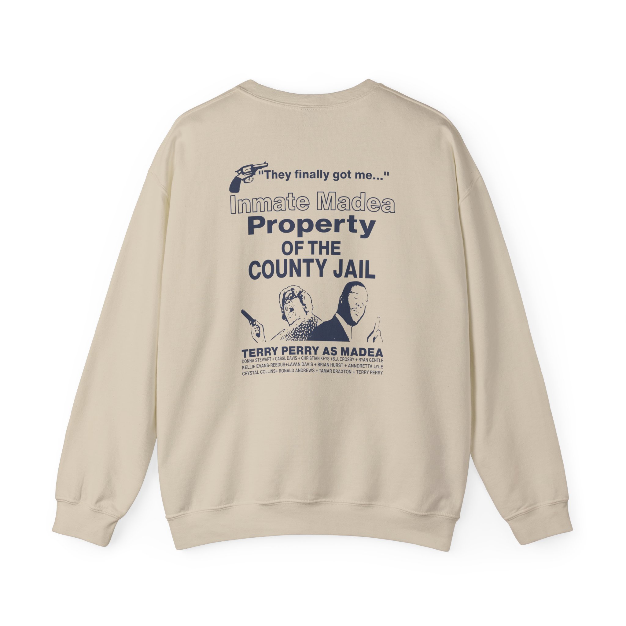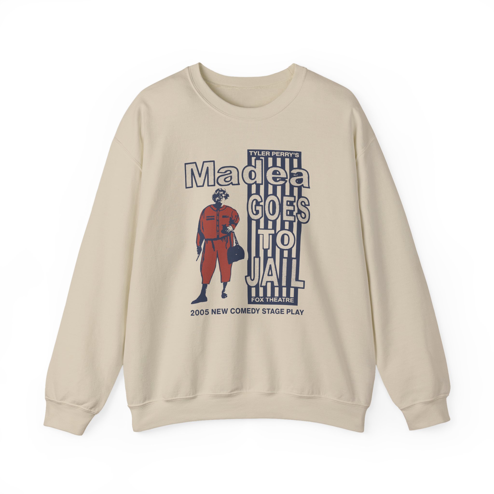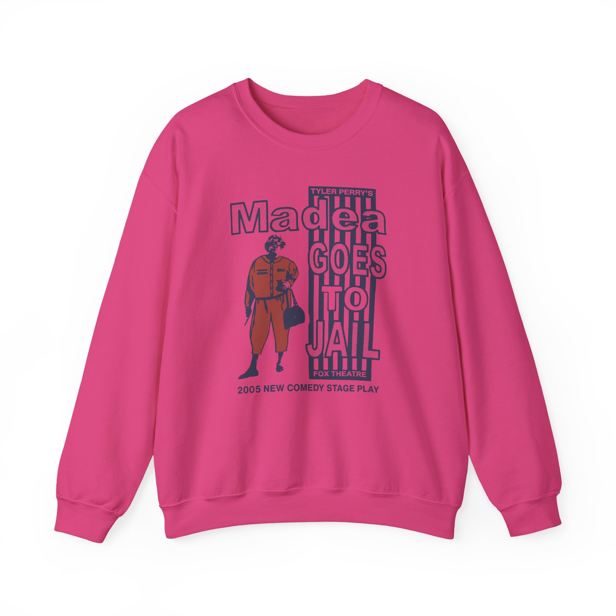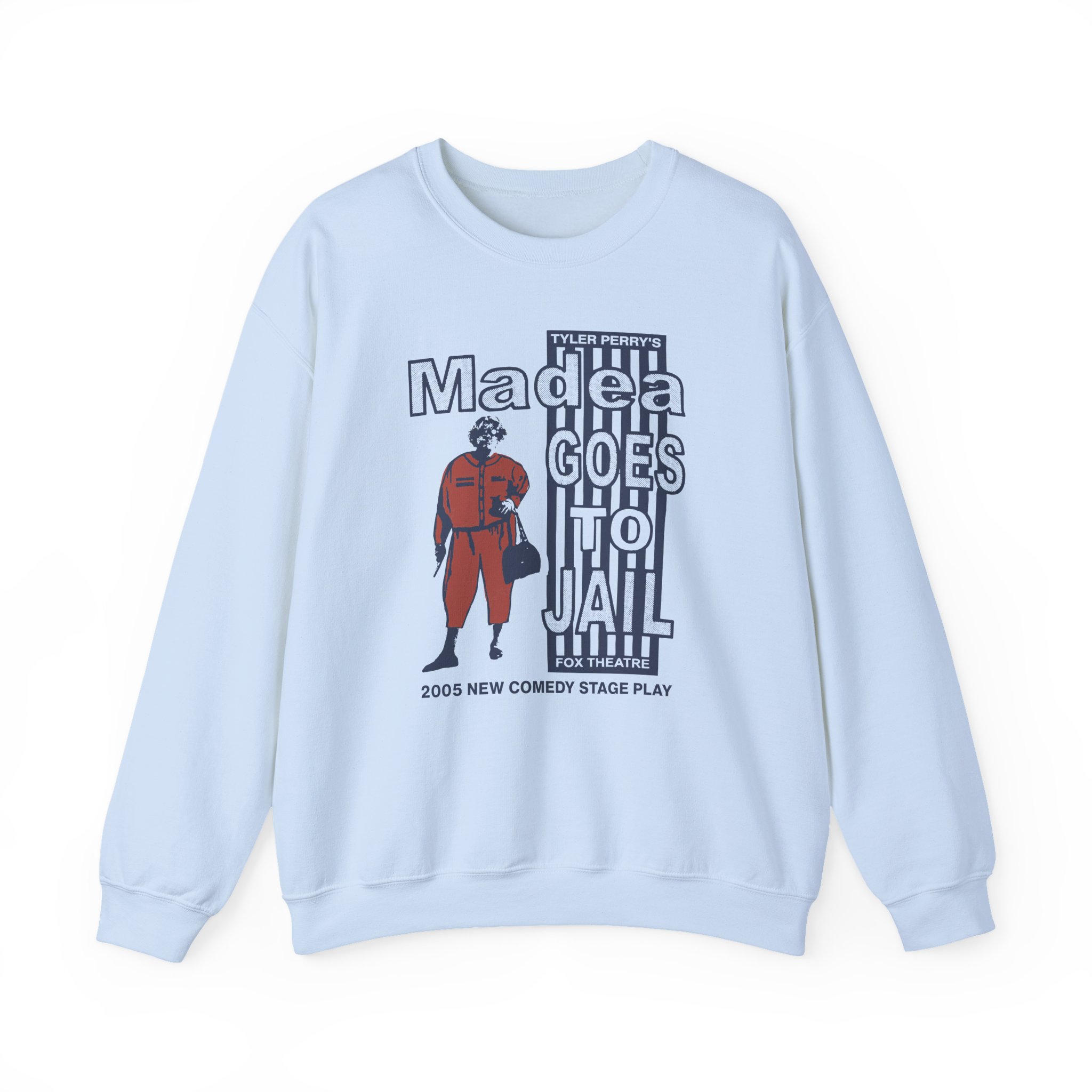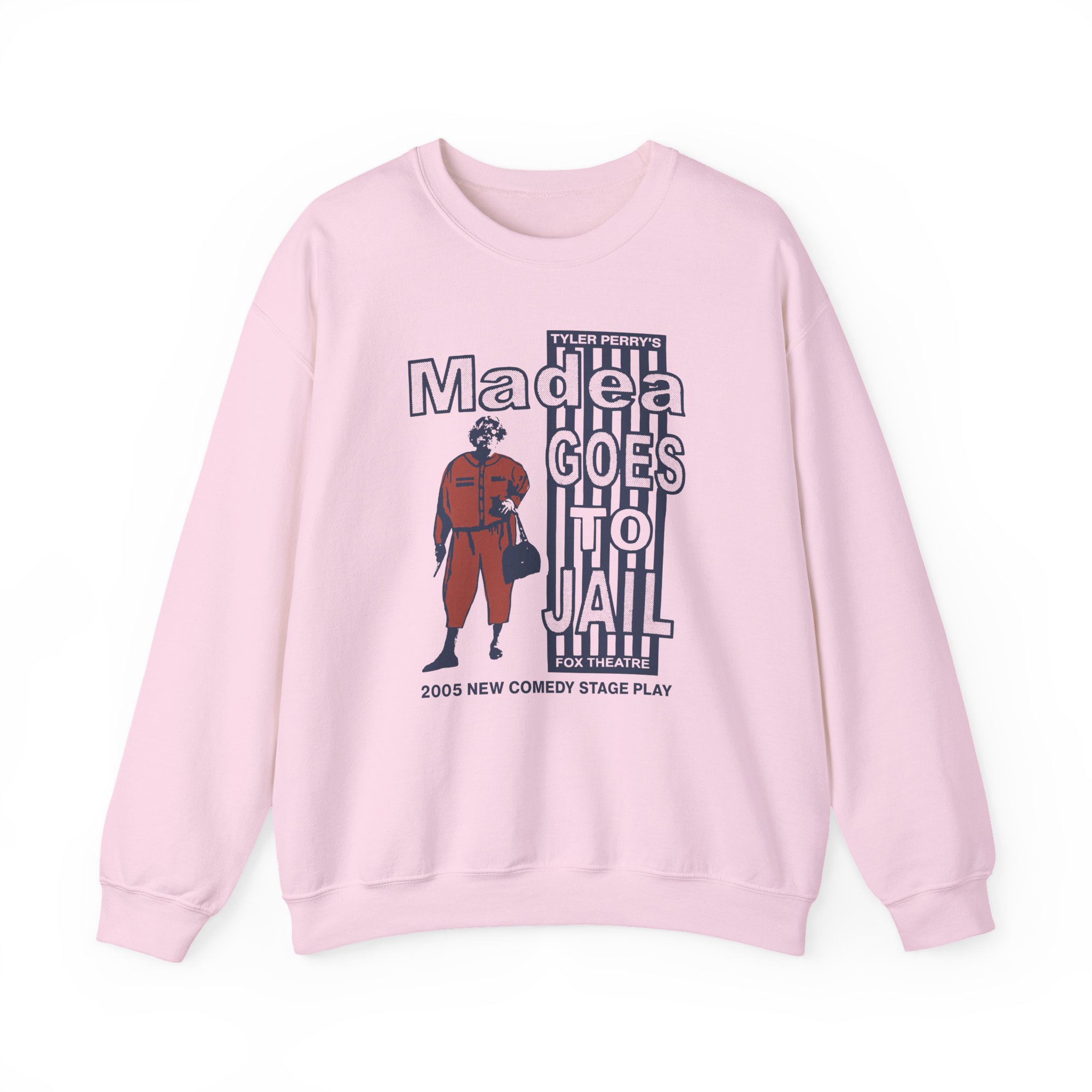 Ideal for any situation, a Tyler Perry Madea Goes to Jail unisex heavy blend crewneck sweatshirt is pure comfort. These garments are made from polyester and cotton. This combination helps designs come out looking fresh and beautiful. The collar is ribbed knit, so it retains its shape even after washing. There are no itchy side seams on these sweaters.